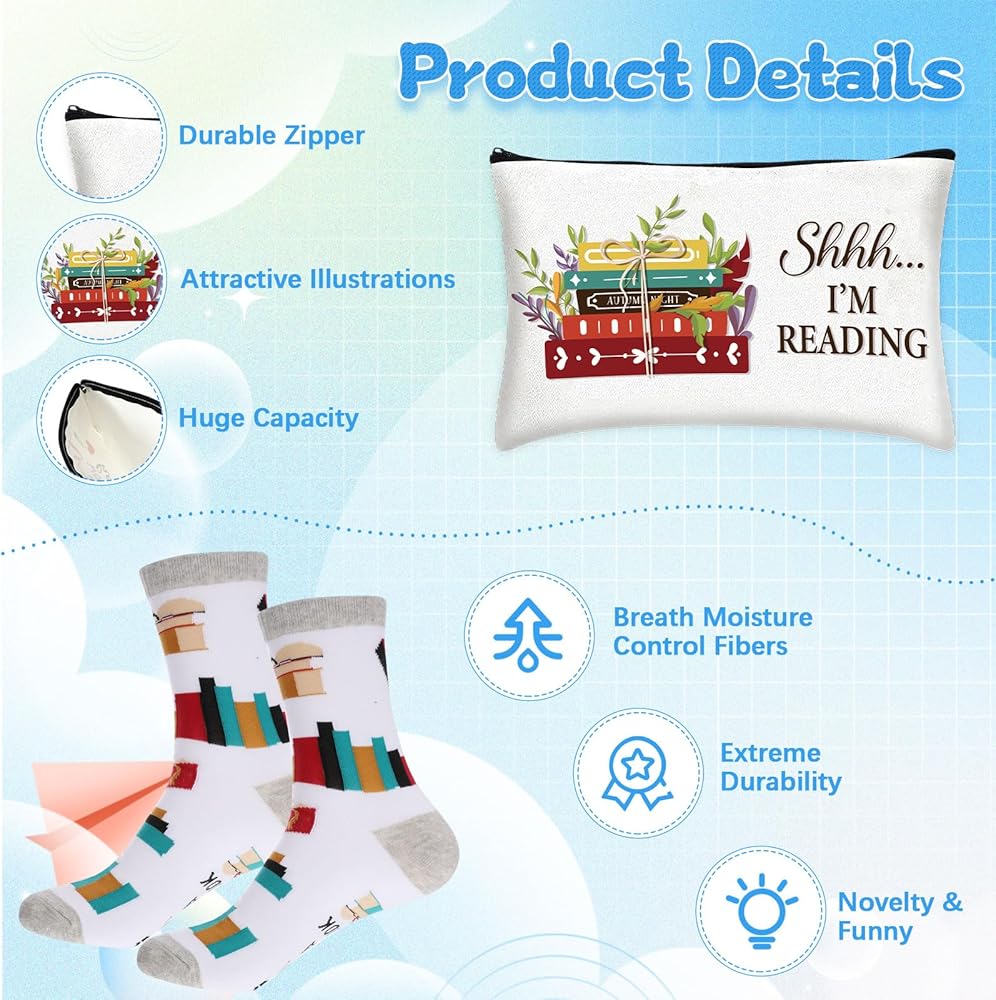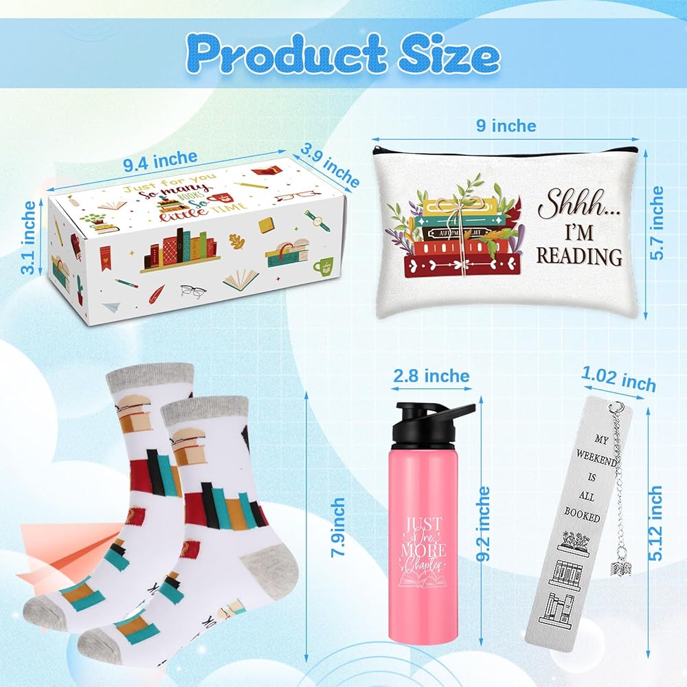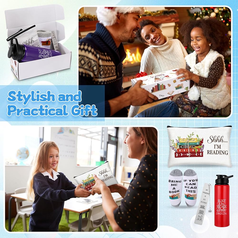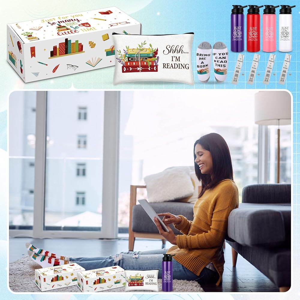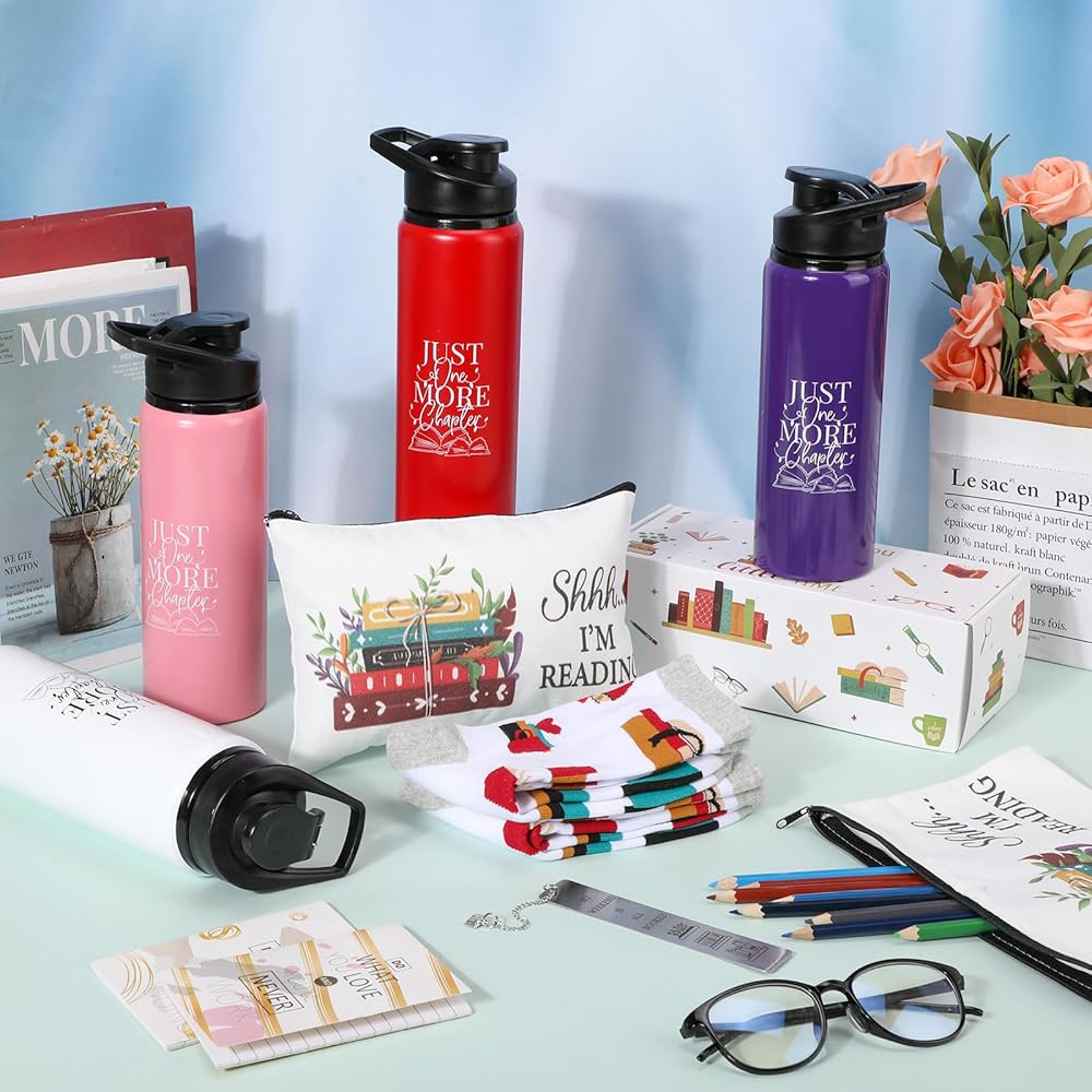 • 20 Pcs Versatile Package: our Christmas book lover gifts include 4 stylish aluminum water bottles, 4 pairs of comfy socks, 4 handy makeup bags, 4 sleek bookmarks, and 4 storage boxes; Each item is tailored with a book lover theme making it a unique and attractive collection