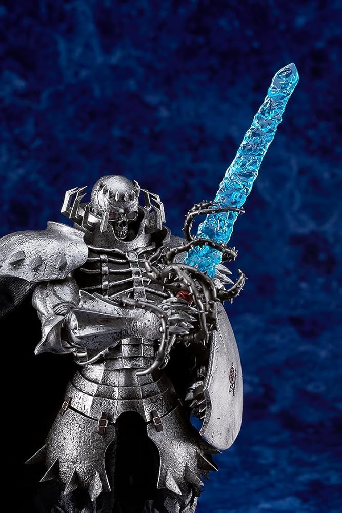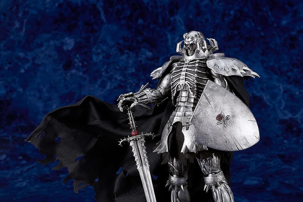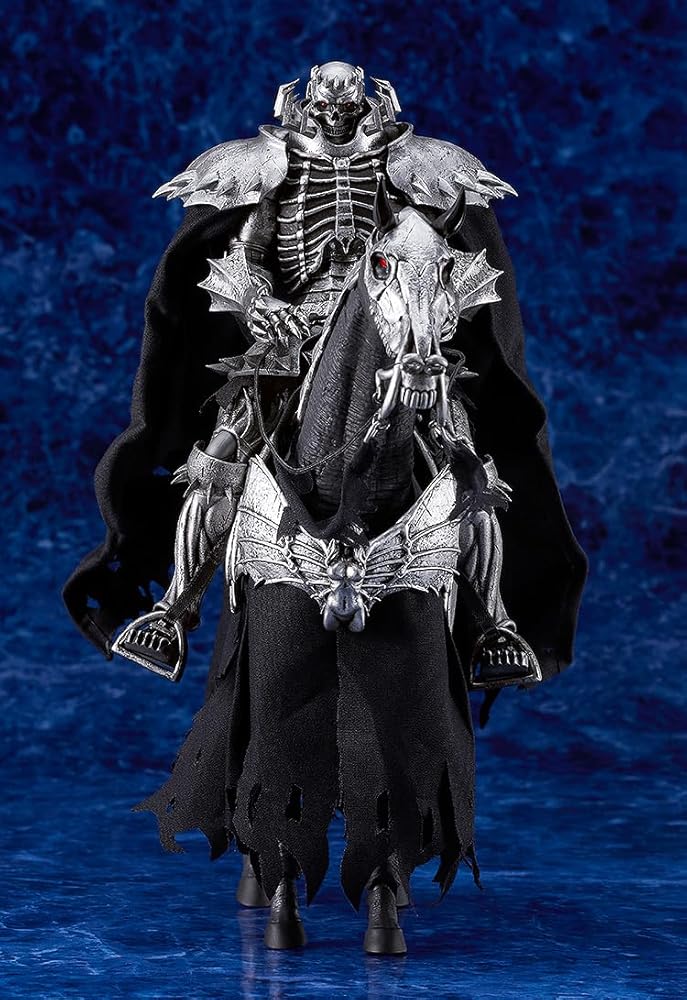 From MAX Factory. From the popular manga "Berserk" comes a figma of the enigmatic Skull Knight, complete with his mighty steed! This figure features a cloth cloak and horse-trapper for a realistic touch. Optional parts include a horse, sword, shield, Behelit Sword, and other accessories for various poses, allowing fans to recreate iconic moments from the series.