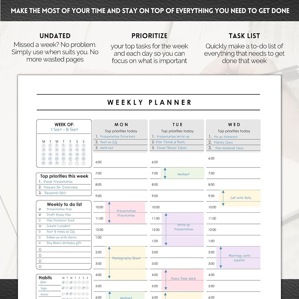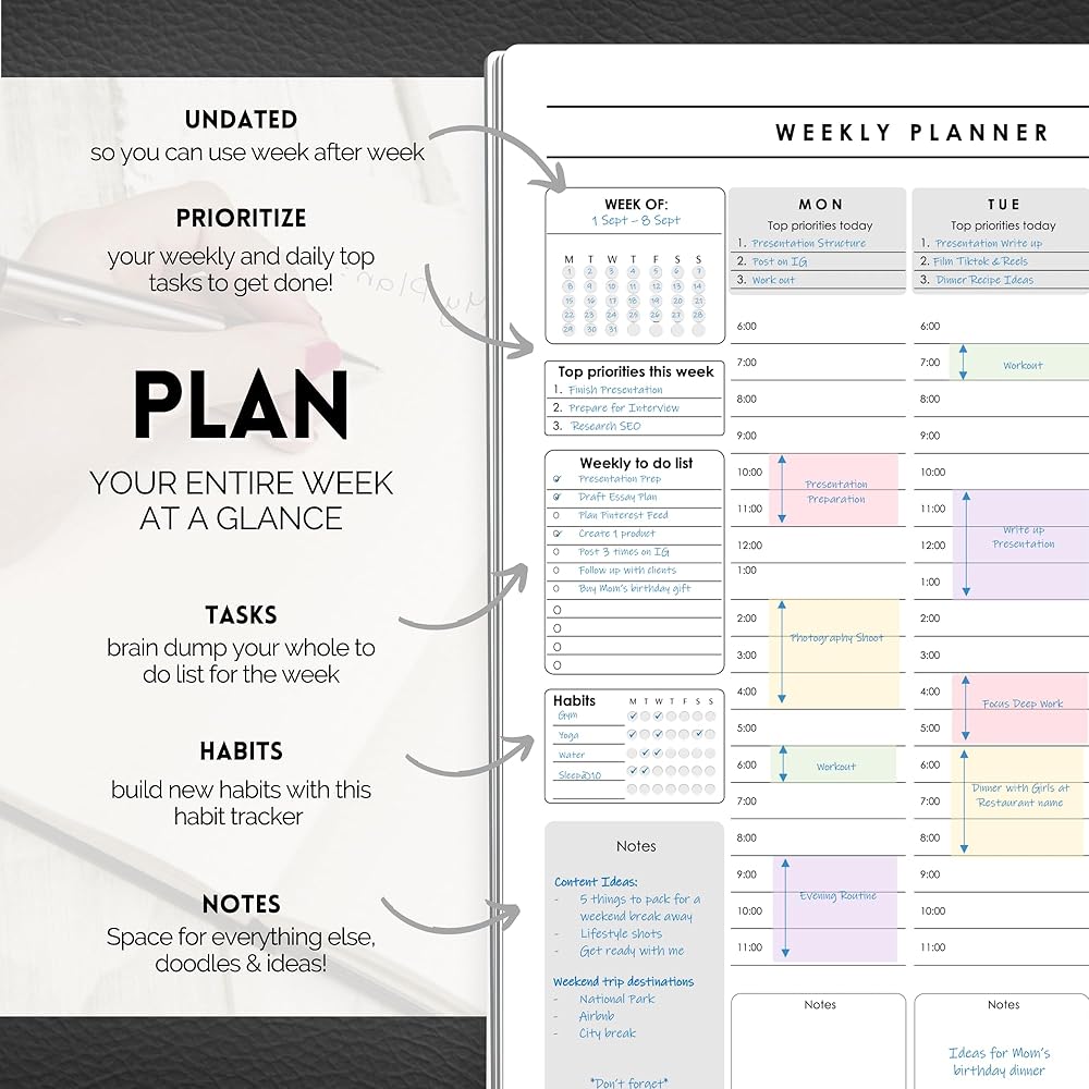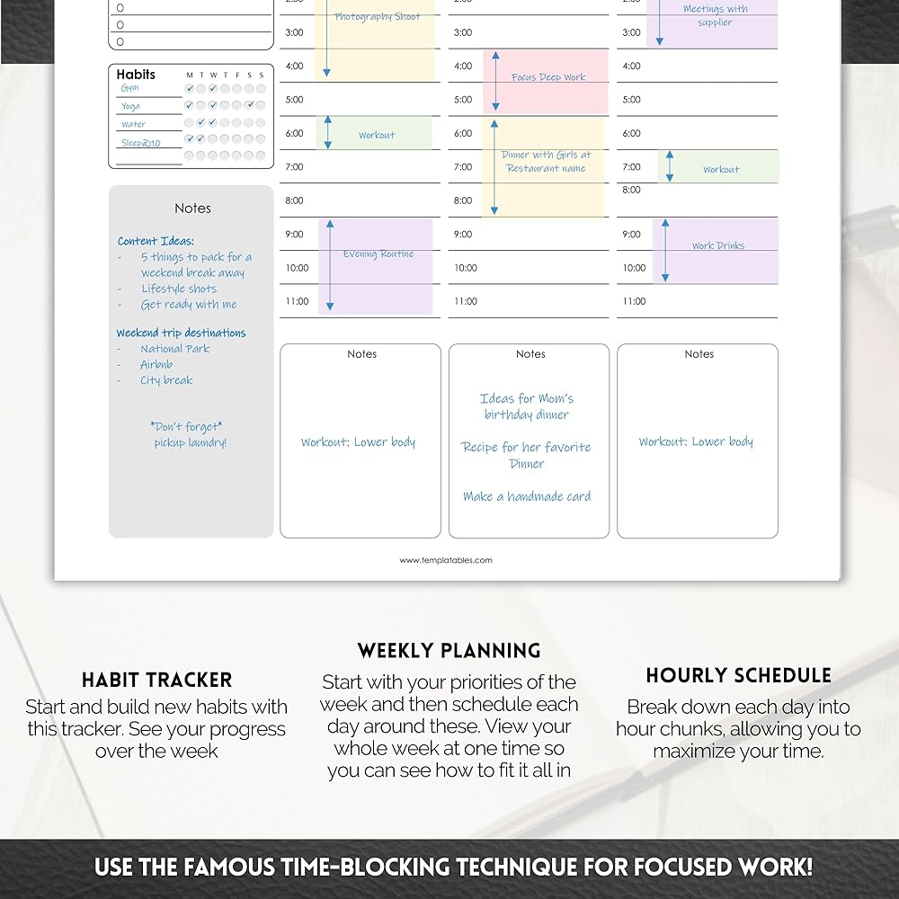 • Time block and organize your days across the week