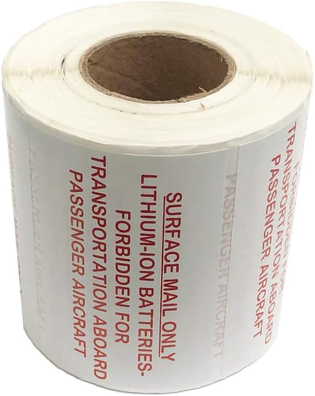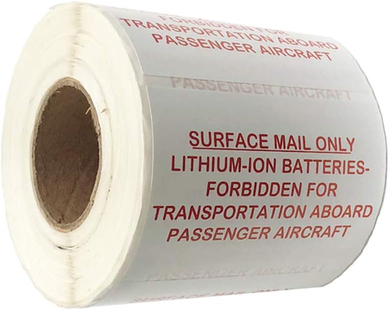 Lithium-ion Batteries Surface Mail Only Forbidden for Transport Aboard Passenger Aircraft Labels 2 x 3 Inch 500 Adhesive Stickers Per Roll.