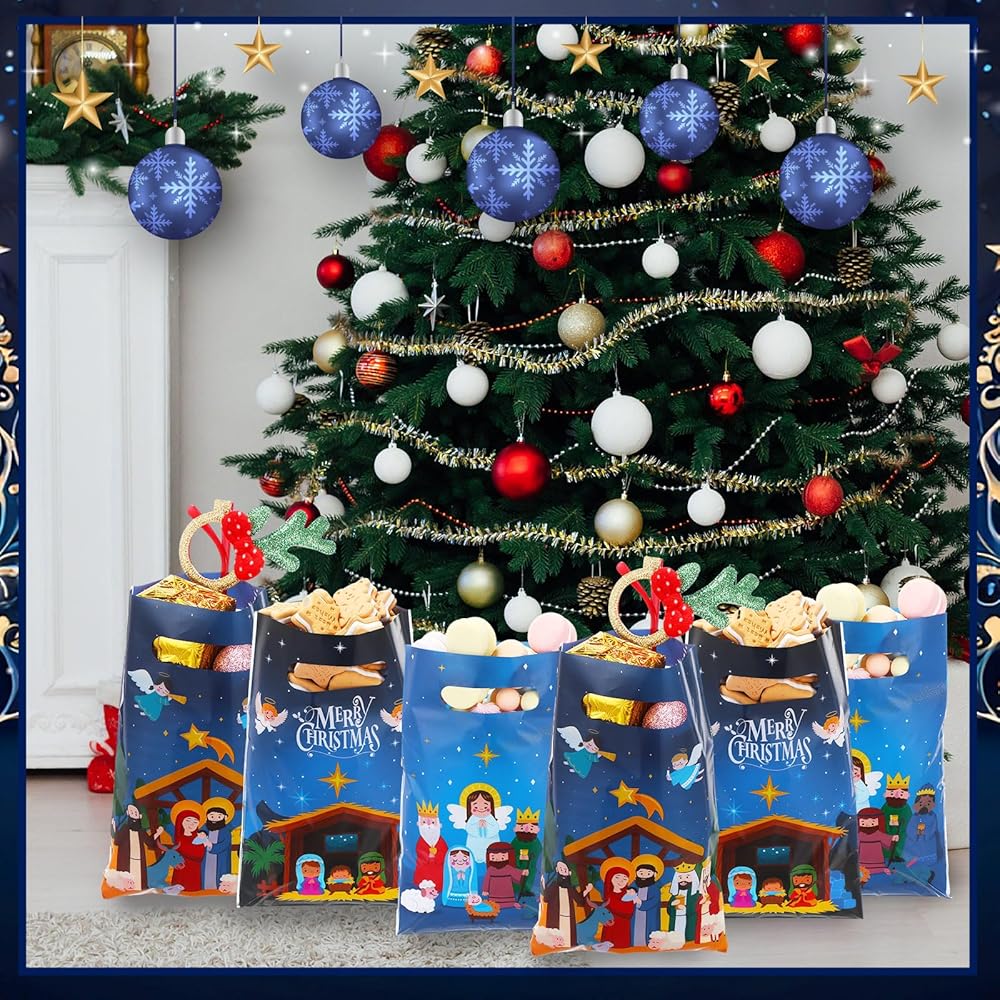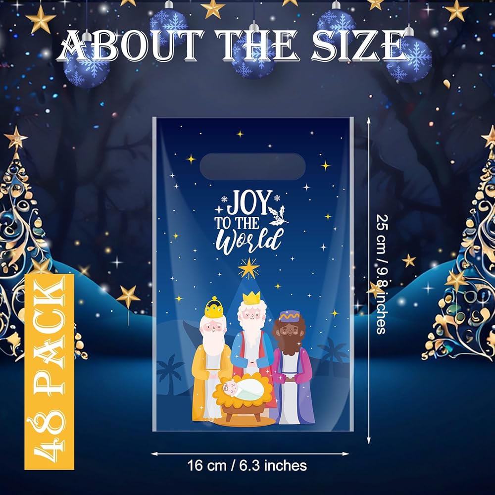 48 قطعة من أكياس هدايا عيد الميلاد المجيد، أكياس حلوى يسوع البلاستيكية لعيد الميلاد، حقائب الحلوى الدينية، حقائب الهدايا المسيحية مع مقبض للكنيسة، الأحد، المدرسة، عطلات الحفلات، الديكور