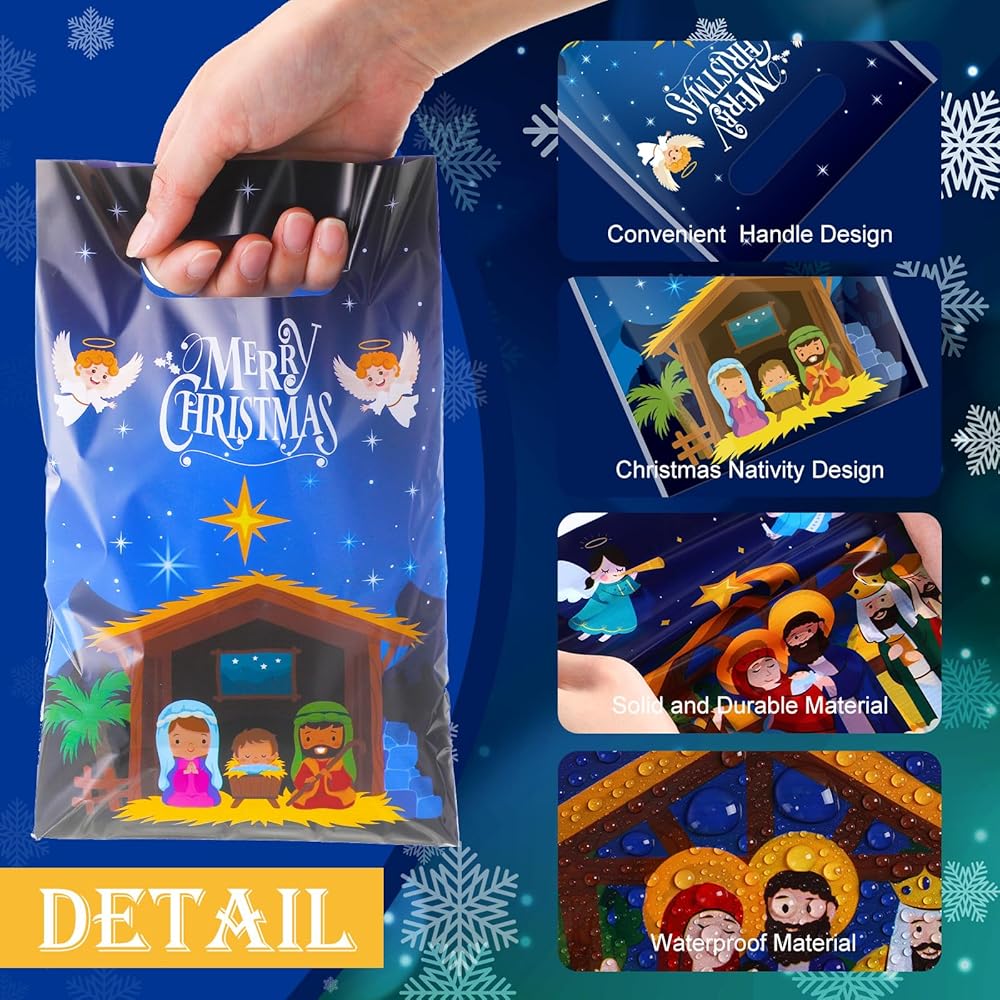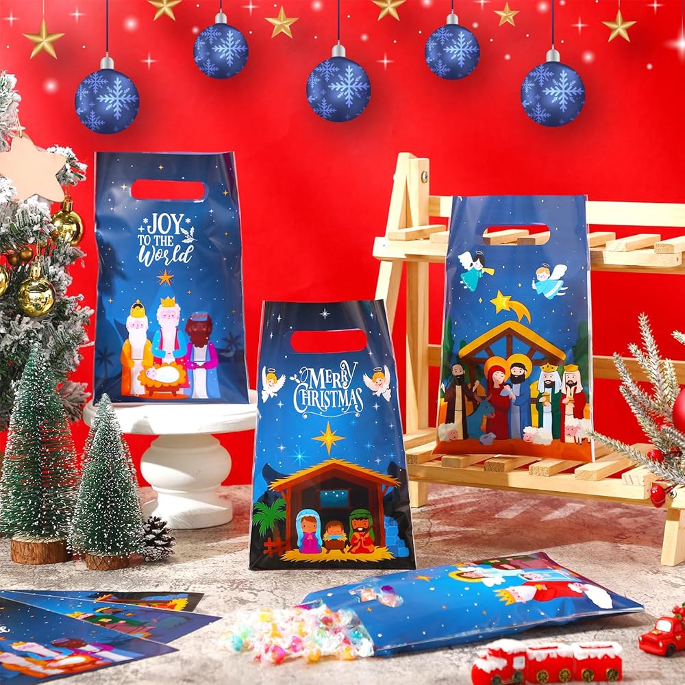 Abundant Quantity: you will receive 48 pieces plastic nativity treat bags available in 4 distinct designs, 12 pieces each style; Sufficient quantity and various styles can meet your christmas gift wrapping and party decoration need, making your gifts and party more charming