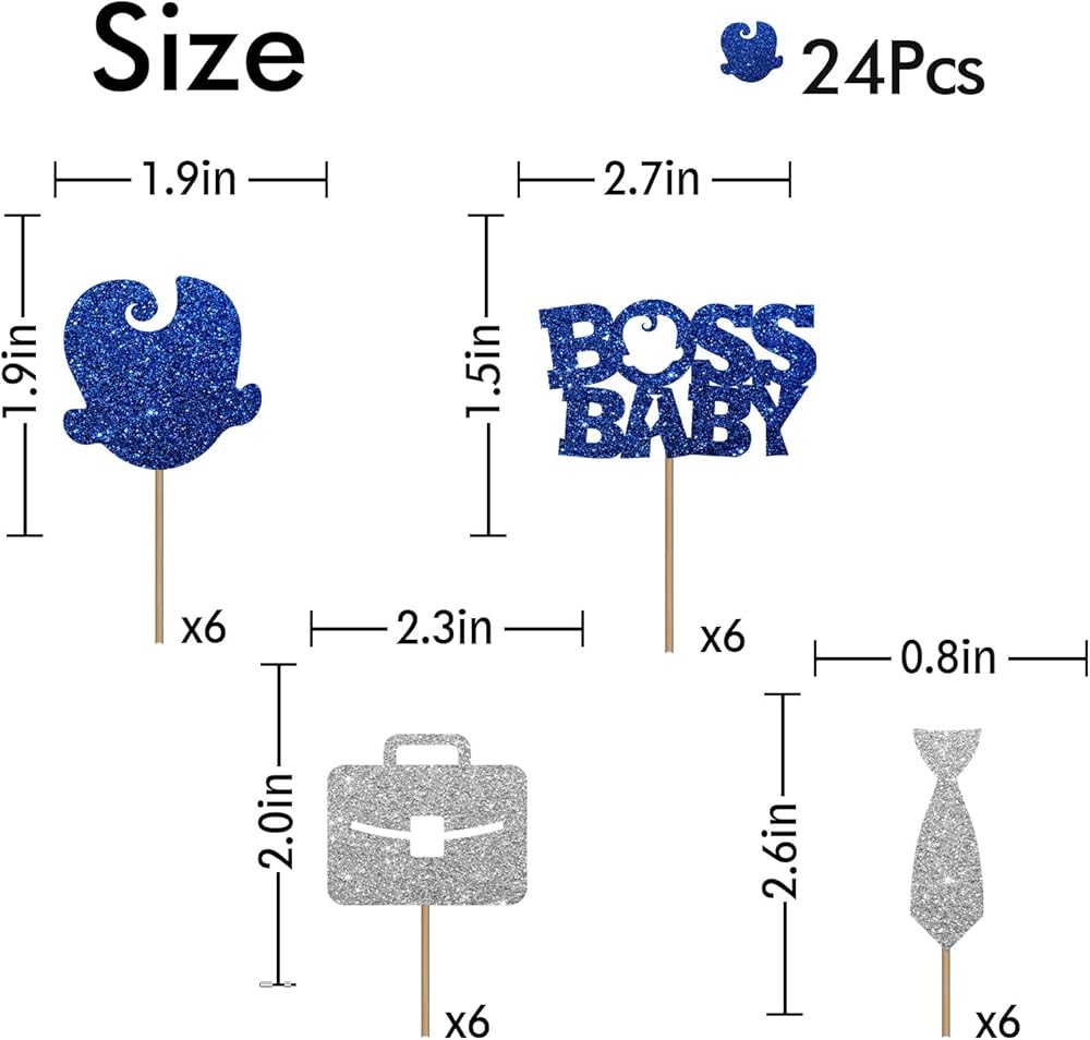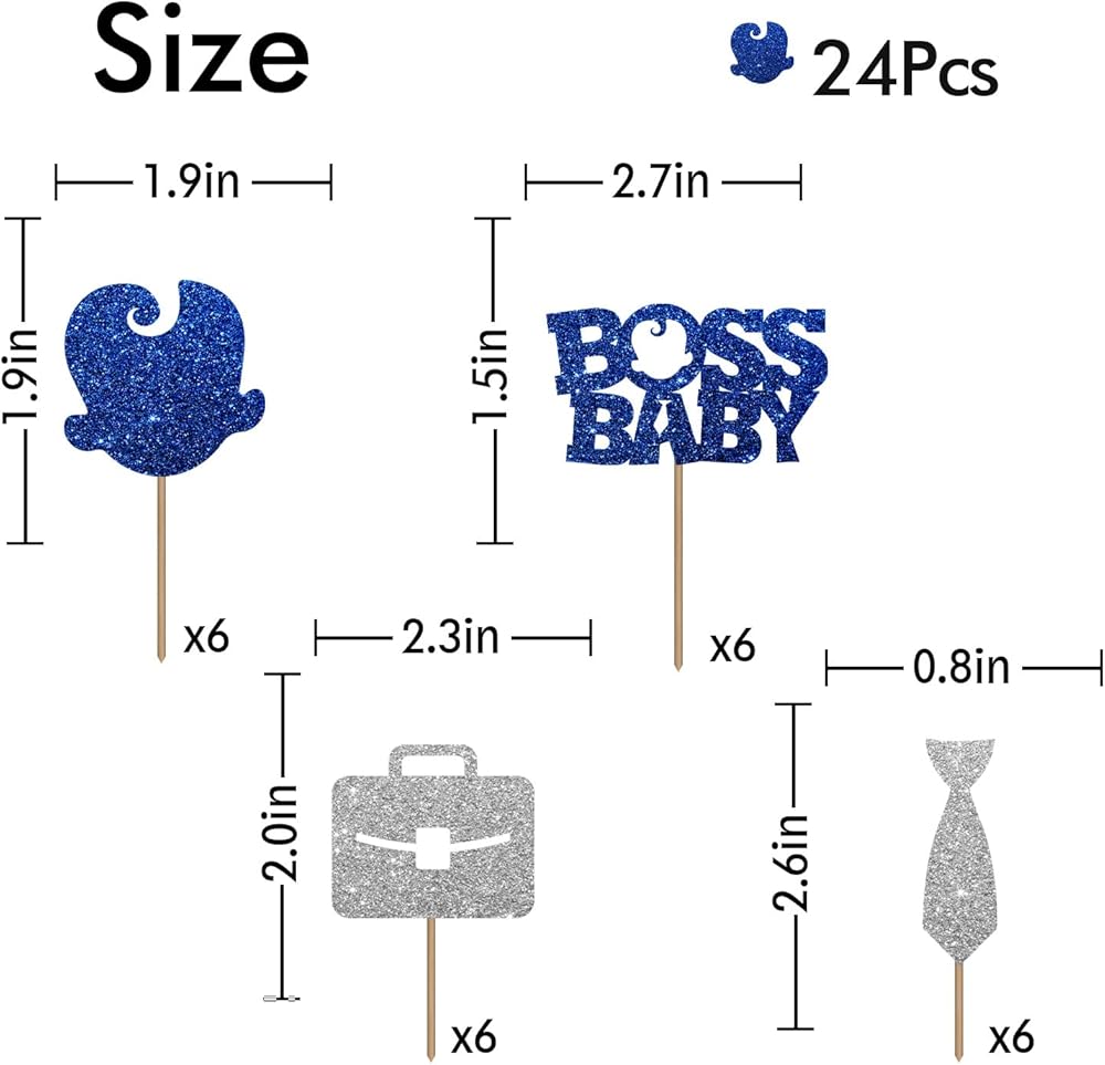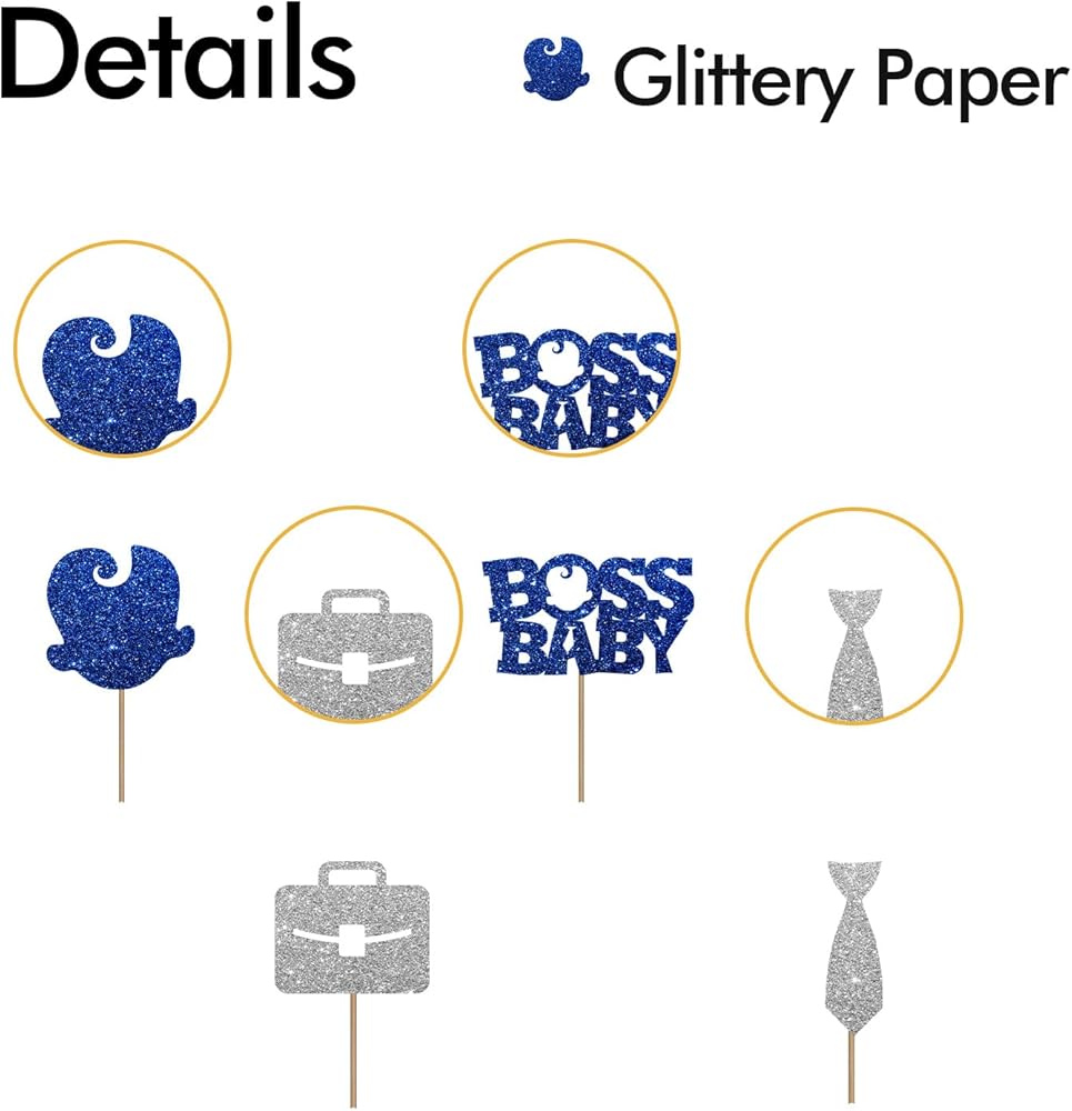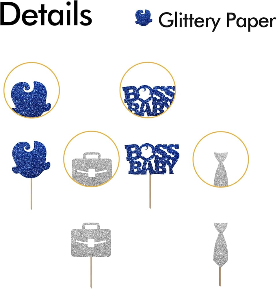 【Material & Quality】💙 It's a high quality product with aesthetic appearance. Gorgeous " Boss Baby " cupcake topper is made of non-shedding glitter cardboard and food-grade wooden stick. Also this product has been assembled. It can be used directly on the cupcake.