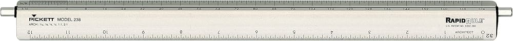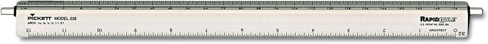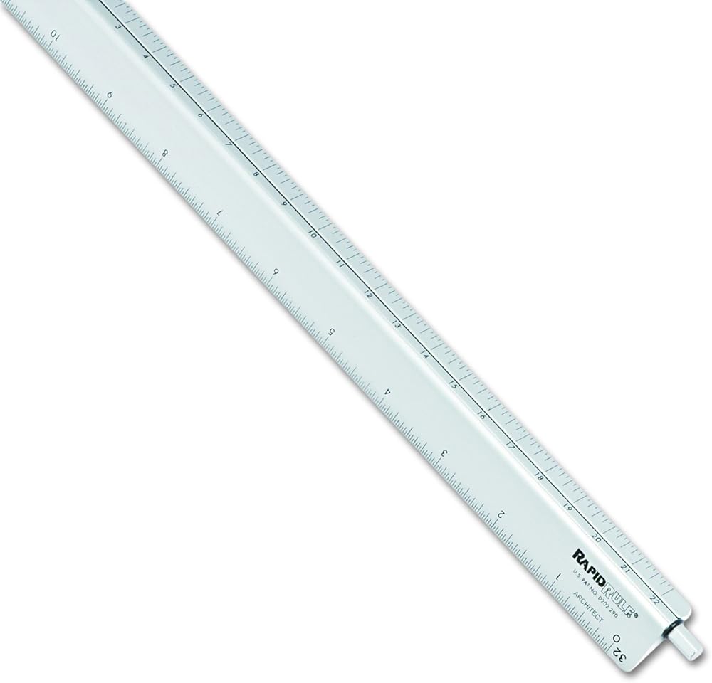 Versatile design lets architects work quickly with maximum efficiency. Change units quickly and easily by rotating dial at either end of scaleâ€â€no need to move the scale from the work surface. 12" measuring length, exact calibrations; 1/32" scale. Manufactured of the highest quality aluminum. Adjusts to 1/16, 1/8, 1/4, 1/2, 1:1, 2:1 and 32.
