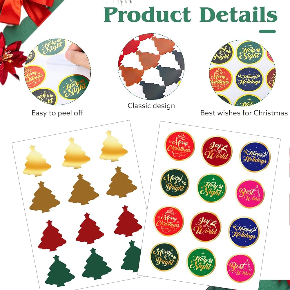 تشمل العبوة: يمكنك الحصول على 240 ختمًا لظرف عيد الميلاد، بما في ذلك 120 بطاقة شجرة عيد الميلاد و120 ملصقًا دائريًا من رقائق الذهب، الحجم 2 × 2 بوصة لتلبية احتياجاتك التزيينية للمناسبات المختلفة. (ملاحظة: يرجى التأكد من حجم الملصق قبل الطلب)