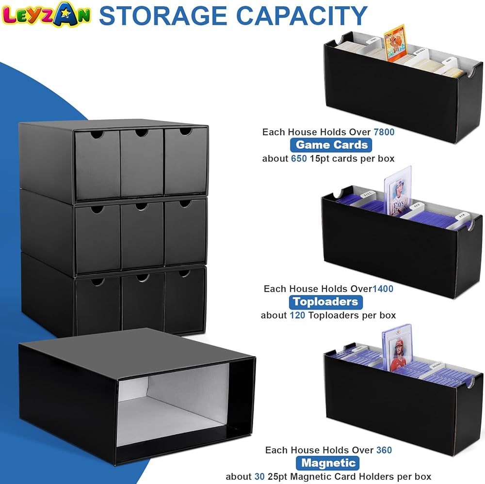 • صندوق تخزين البطاقات 3 في 1: يمكن لبيت تخزين البطاقات هذا استيعاب 7,200 بطاقة بدون أكمام، أو 1,400 بطاقة تحميل علوية، أو 360 حامل بطاقات مغناطيسية؛ مثالية لتخزين البطاقات على نطاق واسع