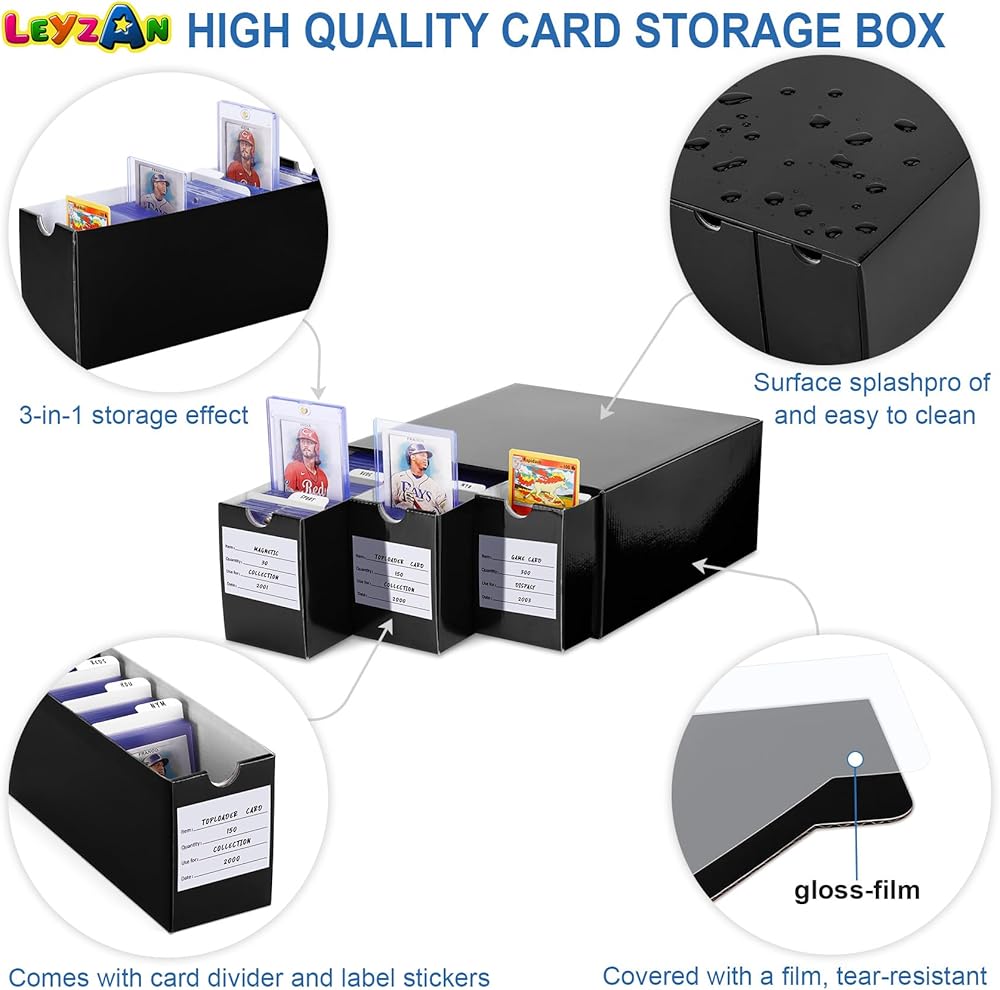 صندوق تخزين بطاقات التداول، صندوق منظم بطاقات من الورق المقوى 3 في 1 مع فواصل لمجموعة بطاقات البيسبول TCG/Magic/Mtg الرياضية