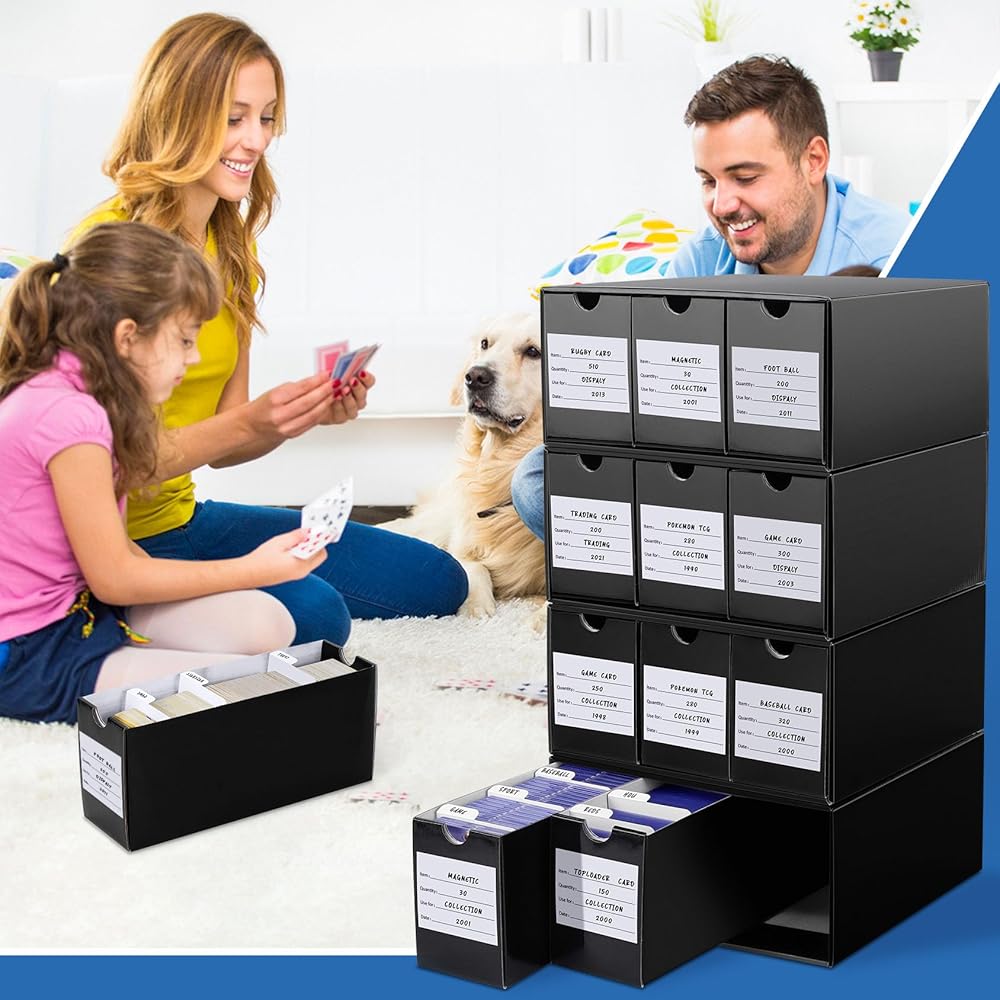 • صناديق بطاقات على شكل درج: تتضمن 12-600 صندوق بطاقات تداول للتخزين الفعال والوصول السريع إلى بطاقات الألعاب الرياضية أو بطاقات الألعاب الخاصة بك