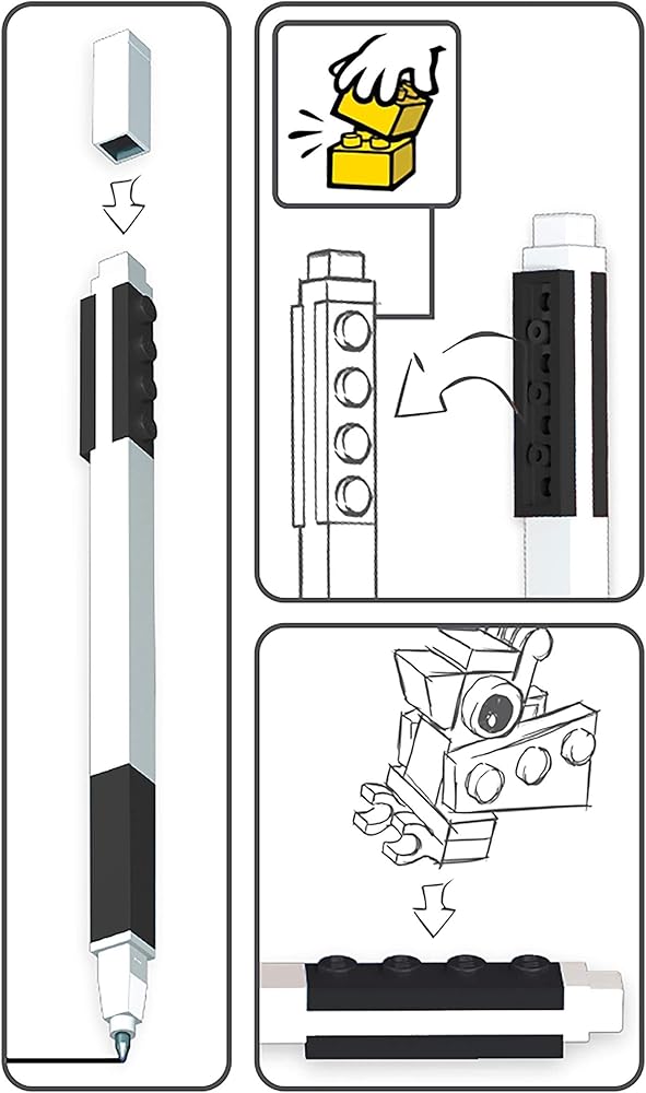 - قلم جل أسود مع لوحات LEGO 2-1x4، نقطة متوسطة