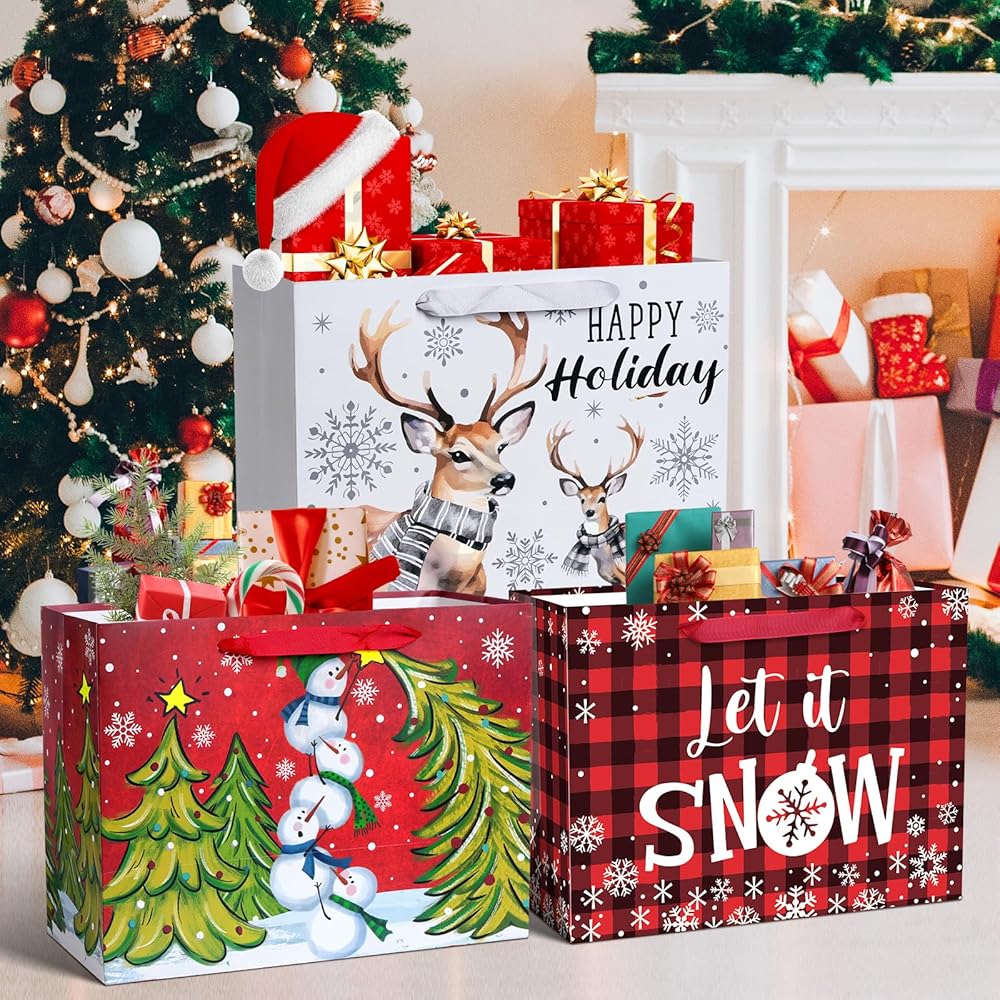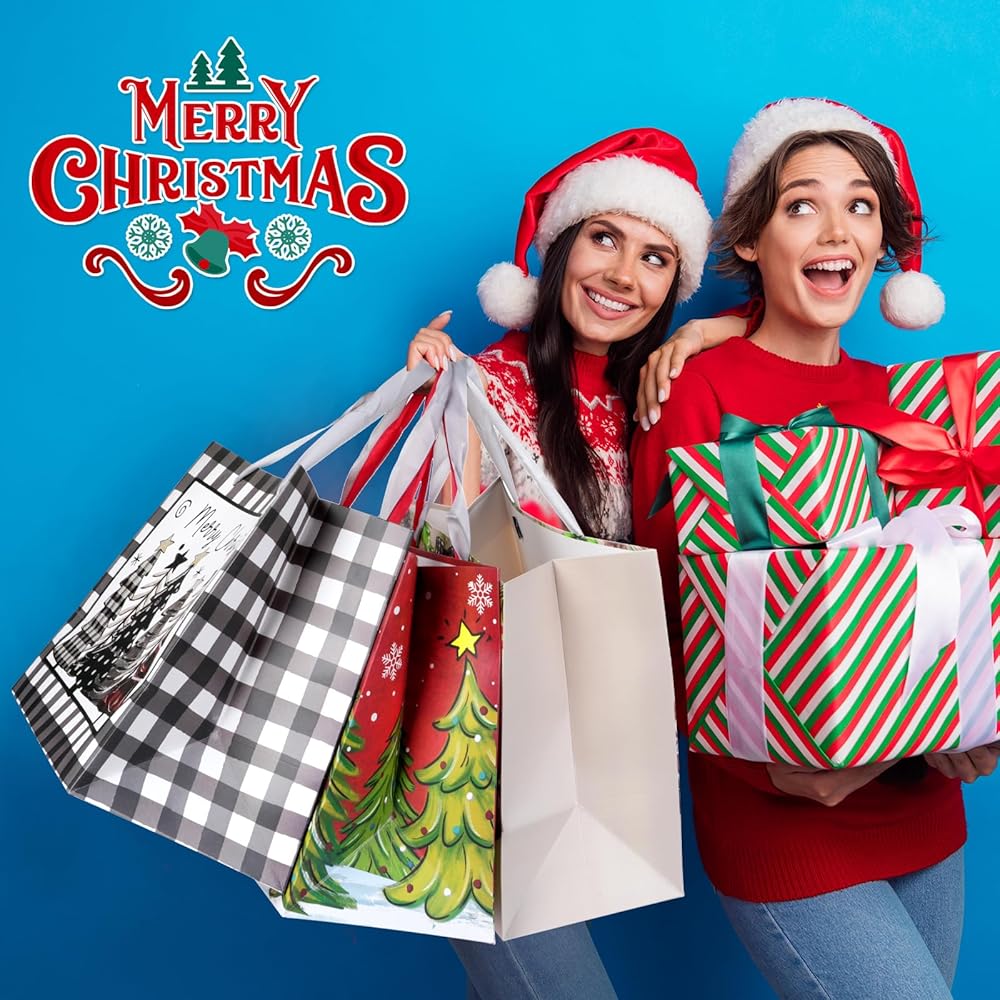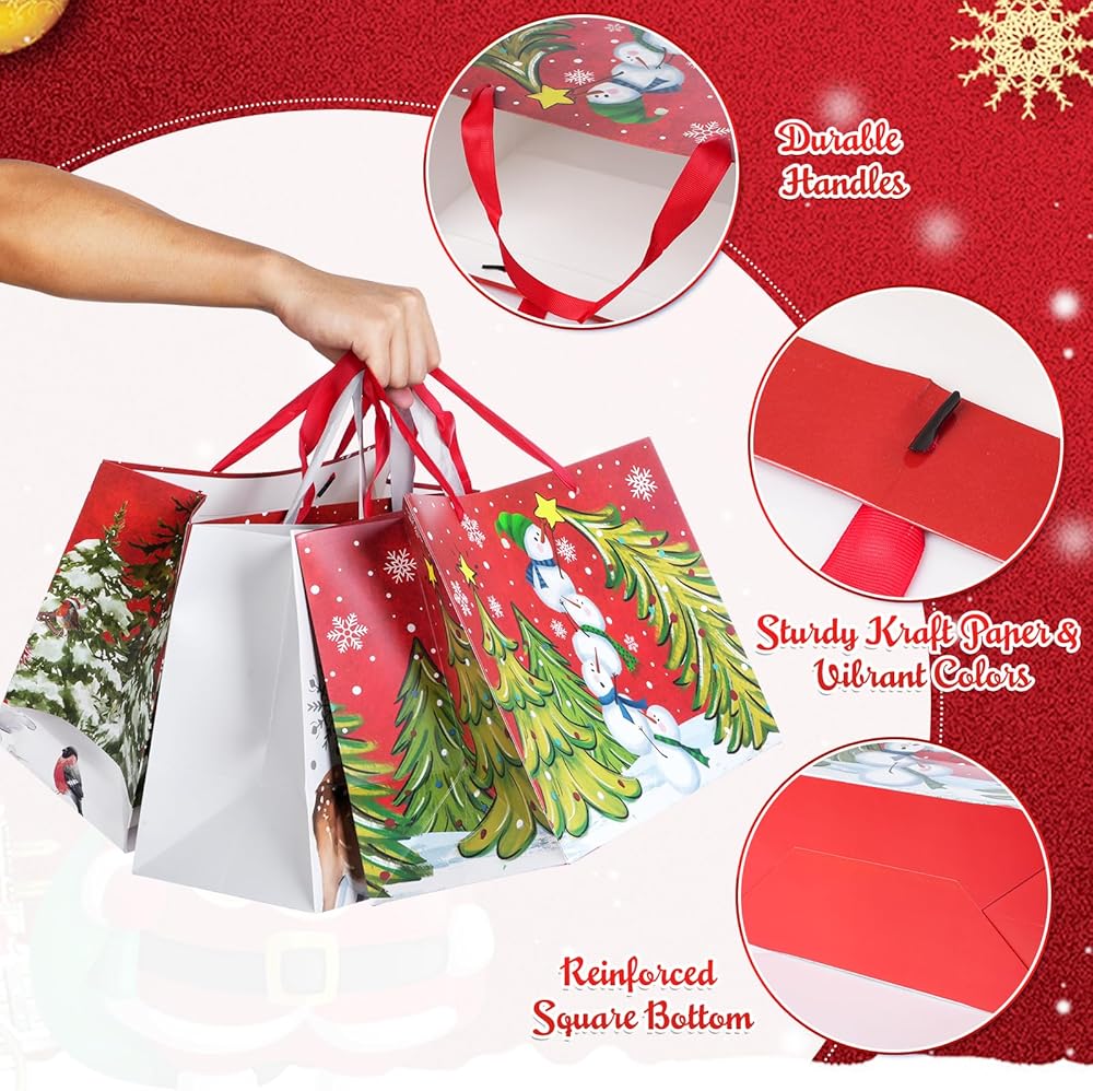 حجم كبير: يبلغ مقاس كل حقيبة ورقية لعيد الميلاد 6.3x9.8x13 بوصة، مما يجعلها مناسبة تمامًا لتغليف مجموعة واسعة من الهدايا الكبيرة، بما في ذلك الألعاب والقمصان والسترات الصوفية والمزيد.