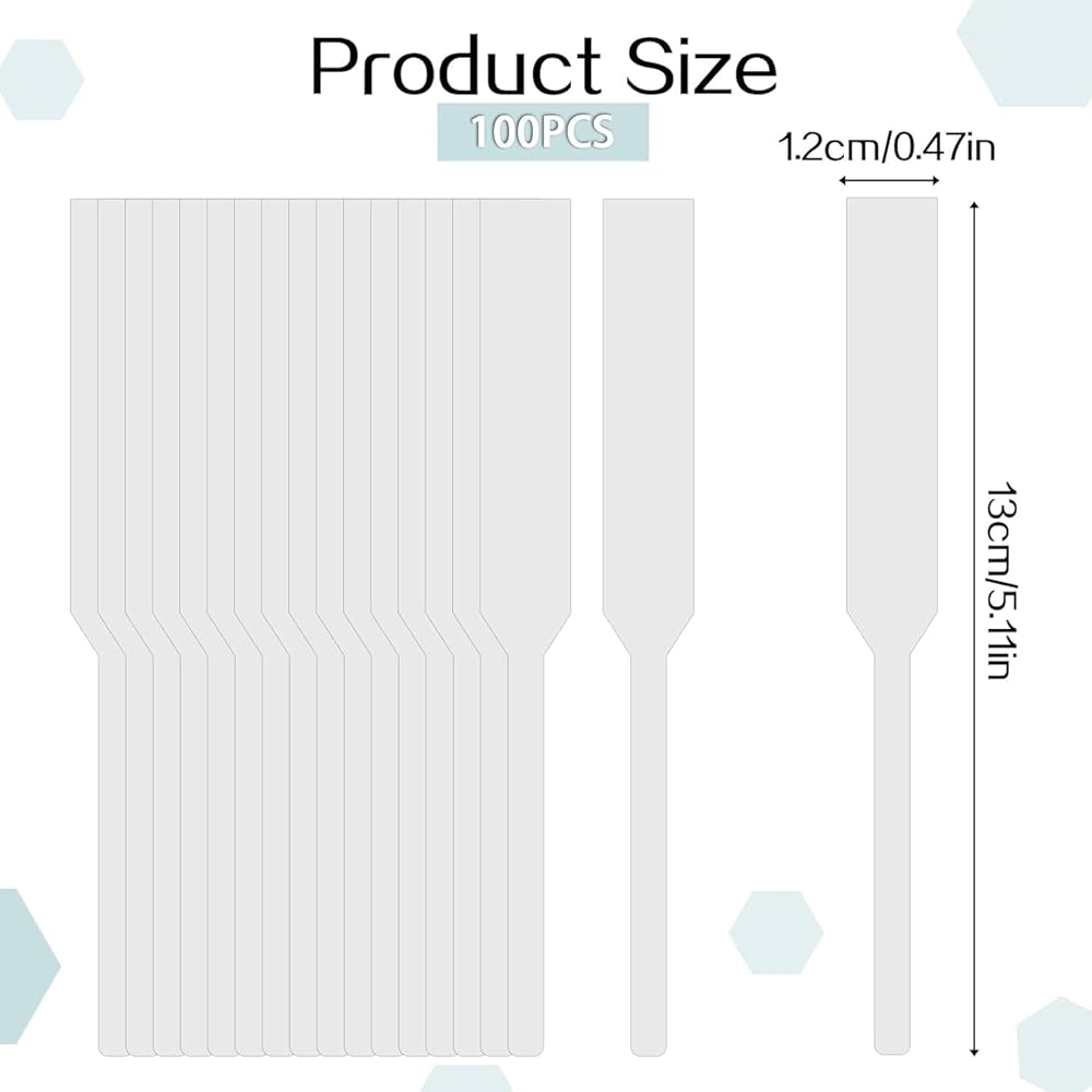 مقاس شرائط اختبار العطور: يبلغ مقاس كل ورقة اختبار عطر حوالي 13 × 1.2 سم/5.11 × 0.47 بوصة، خفيفة الوزن ورقيقة، وسهلة الحمل والتخزين، وهي ديكور يومي جيد لك