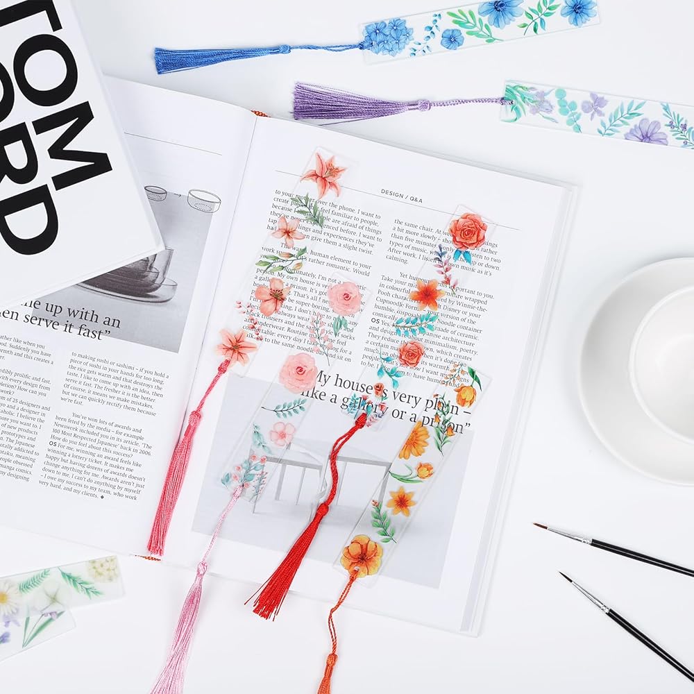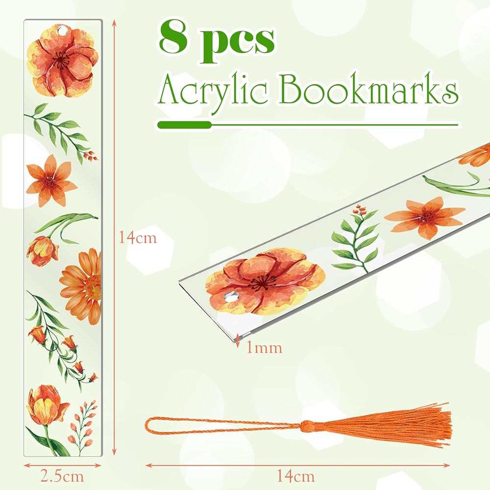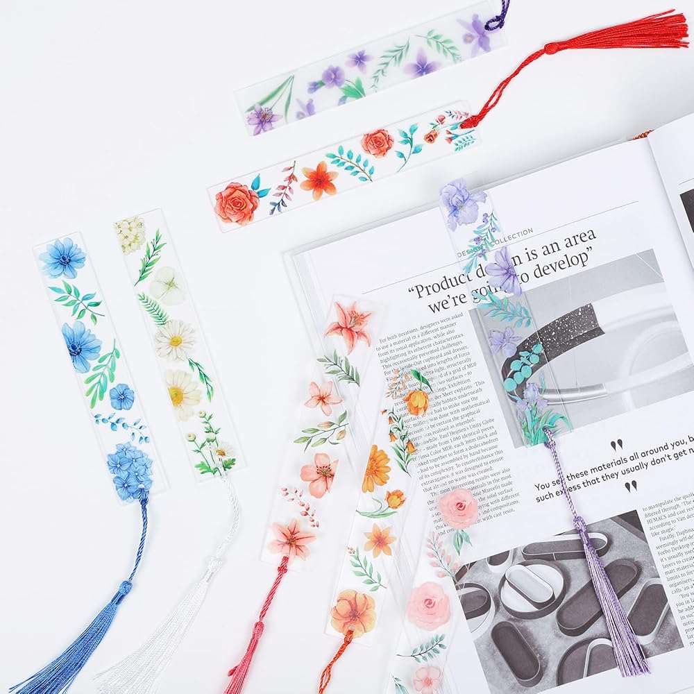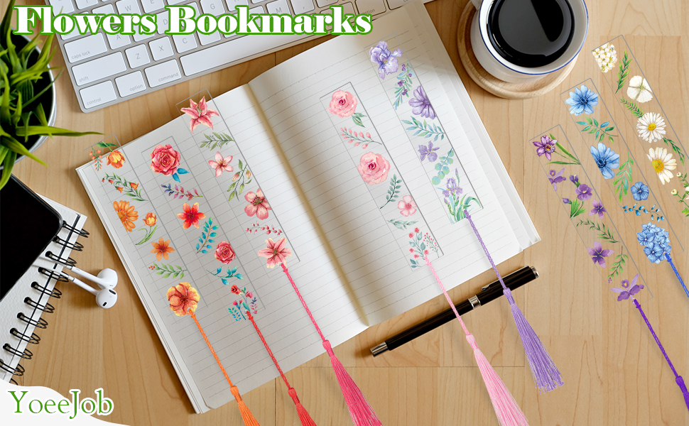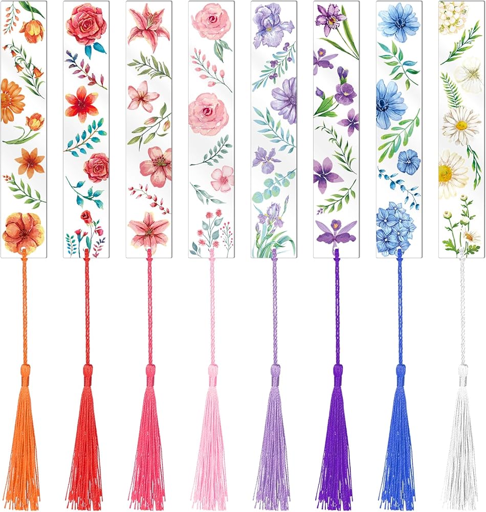 علامات مرجعية على شكل زهرة أكريليك من YoeeJob لمحبي الكتب، 8 قطع من الإشارات المرجعية الشفافة من الأكريليك مع شرابة ملونة للقارئ/الكاتب/النساء/الرجال/الفتيات/المعلمين، 8 أنماط