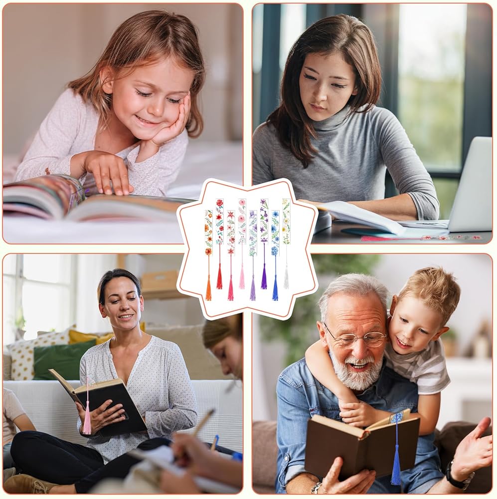 • 【تسليط الضوء】: كل علامة مرجعية مصممة بأنماط زهور بألوان وأشكال مختلفة، وهي مجهزة بشرابات من نفس لون الزهور. تحتوي علاماتنا المرجعية على طبقة واقية، يرجى إزالتها قبل الاستخدام.