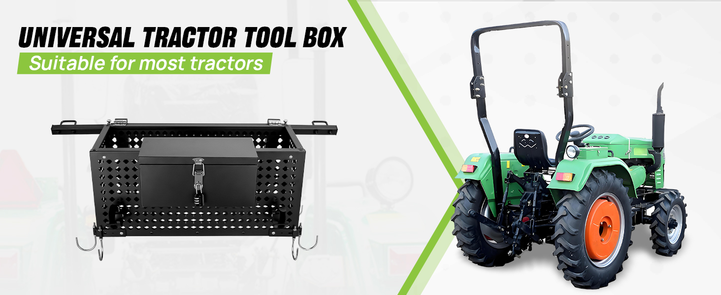 • ملاءمة عالمية: تم تصميم صندوق الأدوات هذا ليناسب معظم موديلات الجرارات عالميًا، مما يجعله ملحقًا عمليًا ومتعدد الاستخدامات للمزارعين ذوي احتياجات المعدات المتنوعة