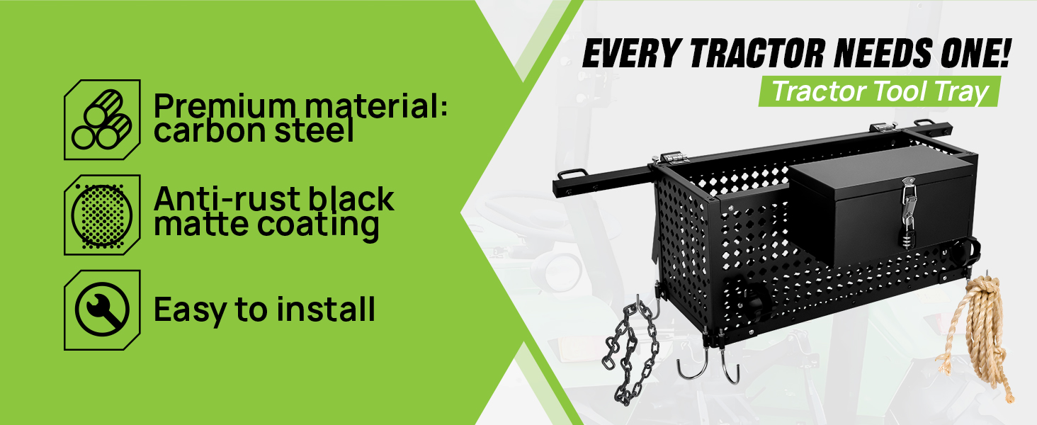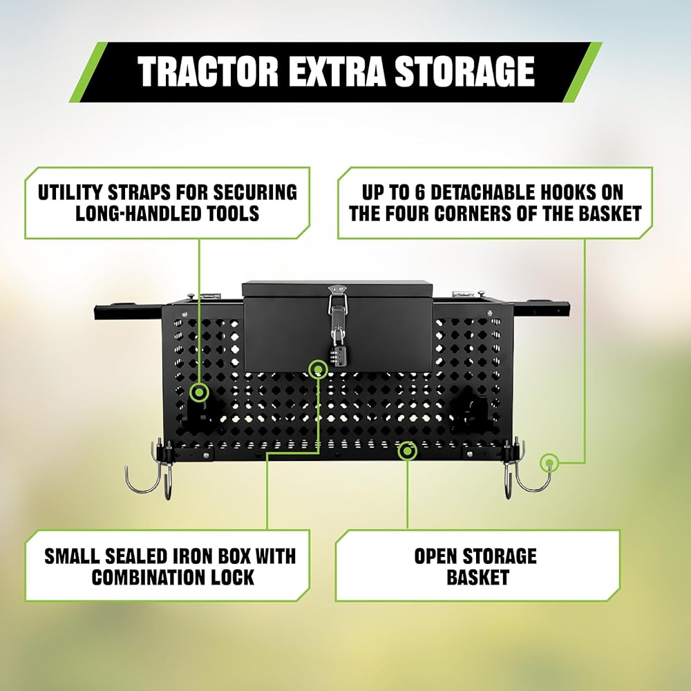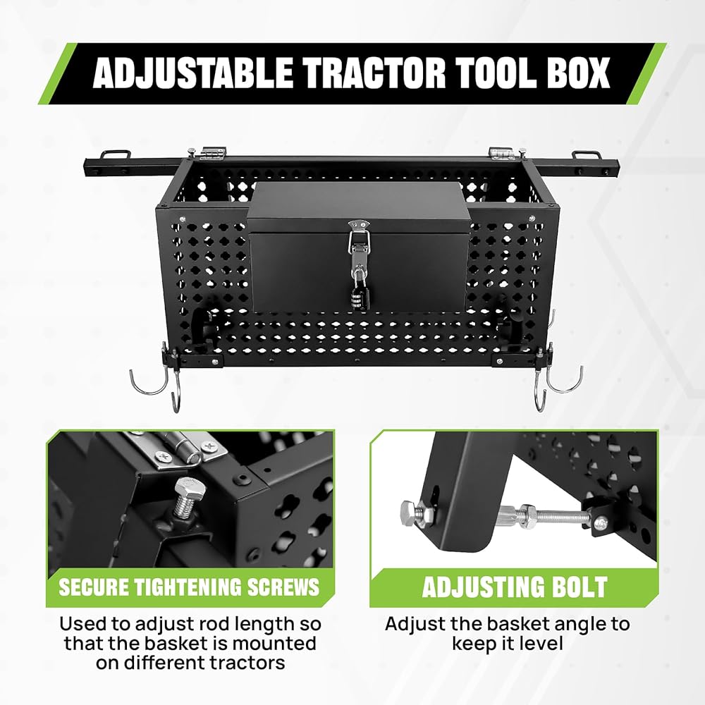 • سهولة التركيب: صندوق الأدوات سهل التركيب والإزالة، مما يسمح بإعداد سريع وخالي من المتاعب على الجرار الخاص بك. يضمن تصميمه سهل الاستخدام أنه يمكنك التركيز على مهامك دون أي تعقيدات غير ضرورية