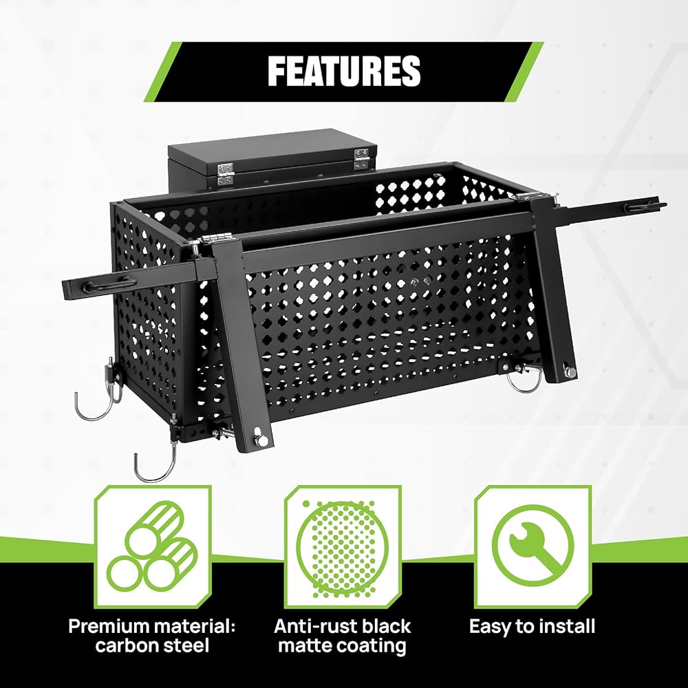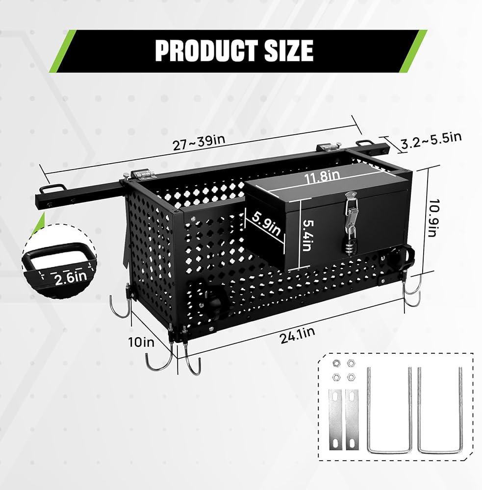 مربع أدوات الجرار الثقيل ، صينية أداة الجرار مع صندوق الاشتراك وقضيب التمديد القابل للتعديل 27 "-39" ، سعة سلة الجرار 200 رطل مع مرفقات جرار ملائمة عالمية ، تستخدم للتخزين (أسود)