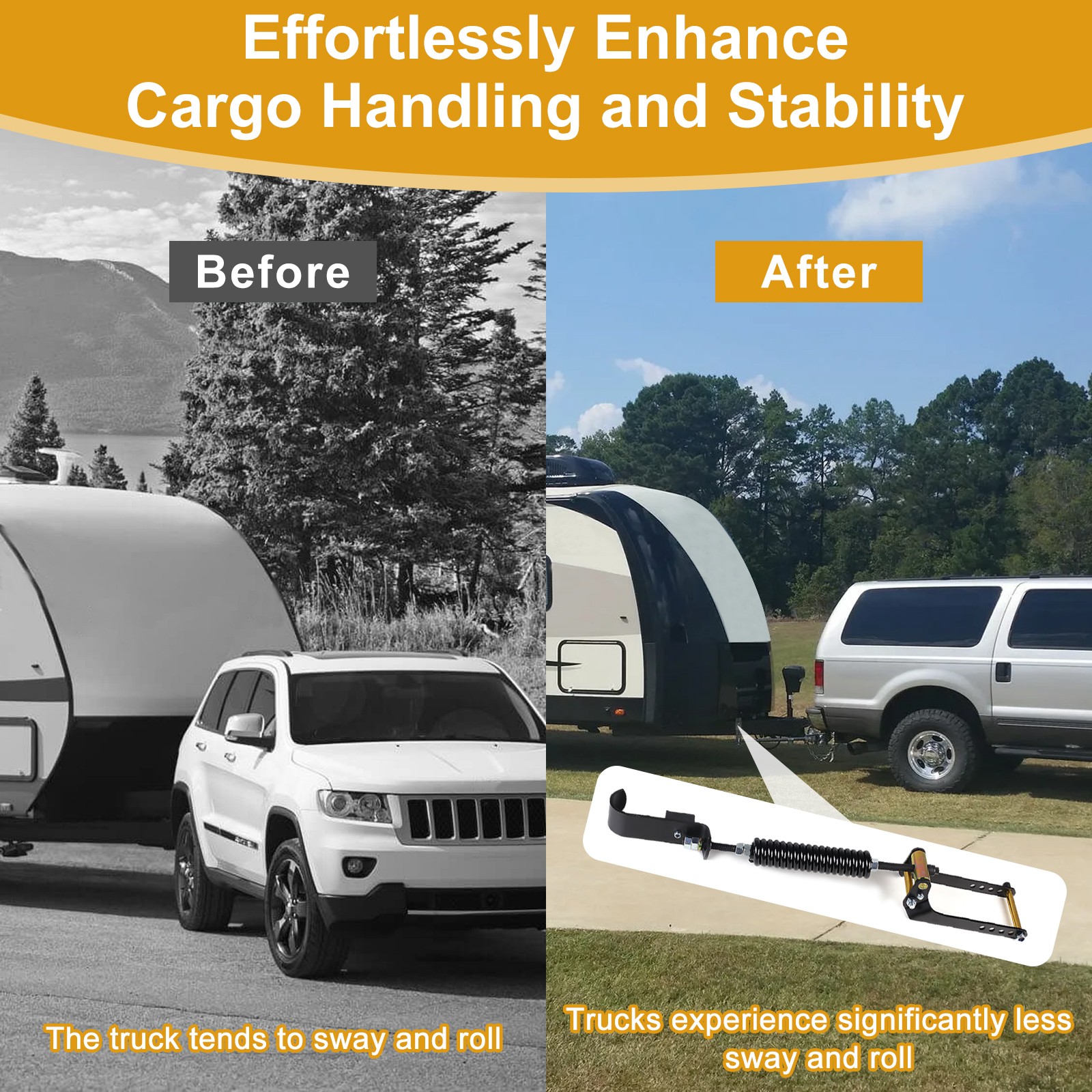 • ميزات الأمان المحسنة: تقضي بشكل فعال على المشكلات الشائعة مثل التفاف المحور وقفز العجلة والأسفل. كما أنه يقلل من التأرجح وتدحرج الجسم أثناء المنعطفات، مما يحافظ على مستوى سيارتك وثباتها عند القطر أو نقل الأحمال الثقيلة. لا تعمل هذه الترقية على تحسين الجر أثناء الكبح والتسارع فحسب، بل تضمن أيضًا سلامتك وراحة بالك على الطريق.
