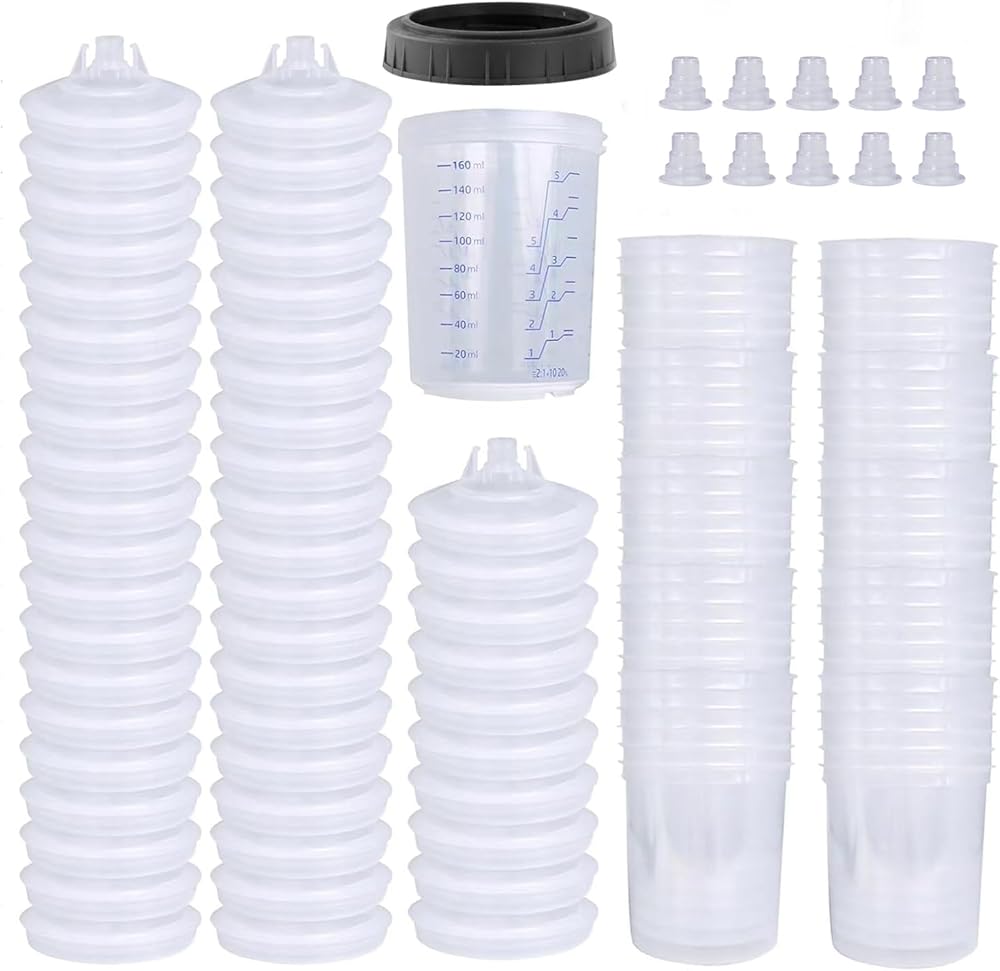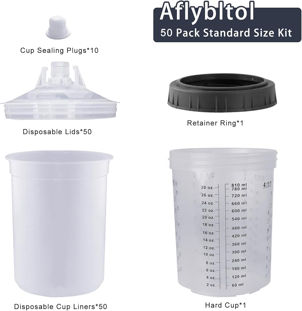 سهل الاستخدام: يحتوي كوب القياس البلاستيكي على ثلاثة أجزاء فقط لسهولة التركيب. يتميز كوبنا الصلب بتدرجات واضحة لتحديد نسب الخلط لأنظمة الطلاء الشائعة، كما أنه شفاف لرؤية مستوى السائل بسهولة.