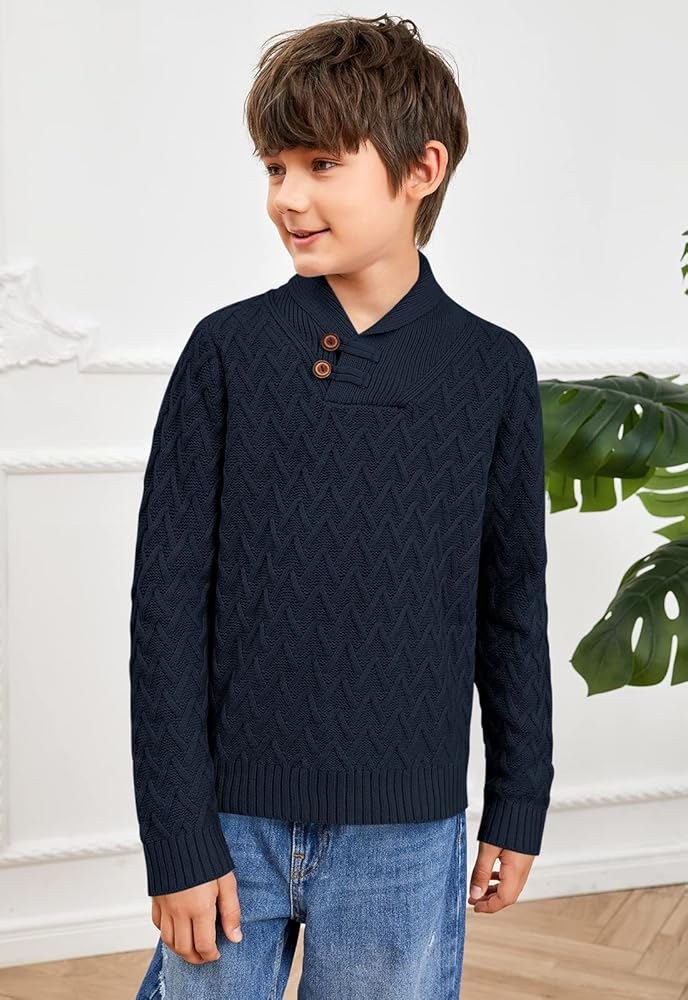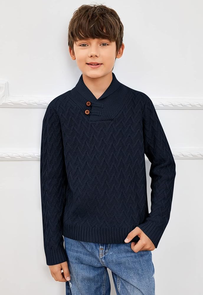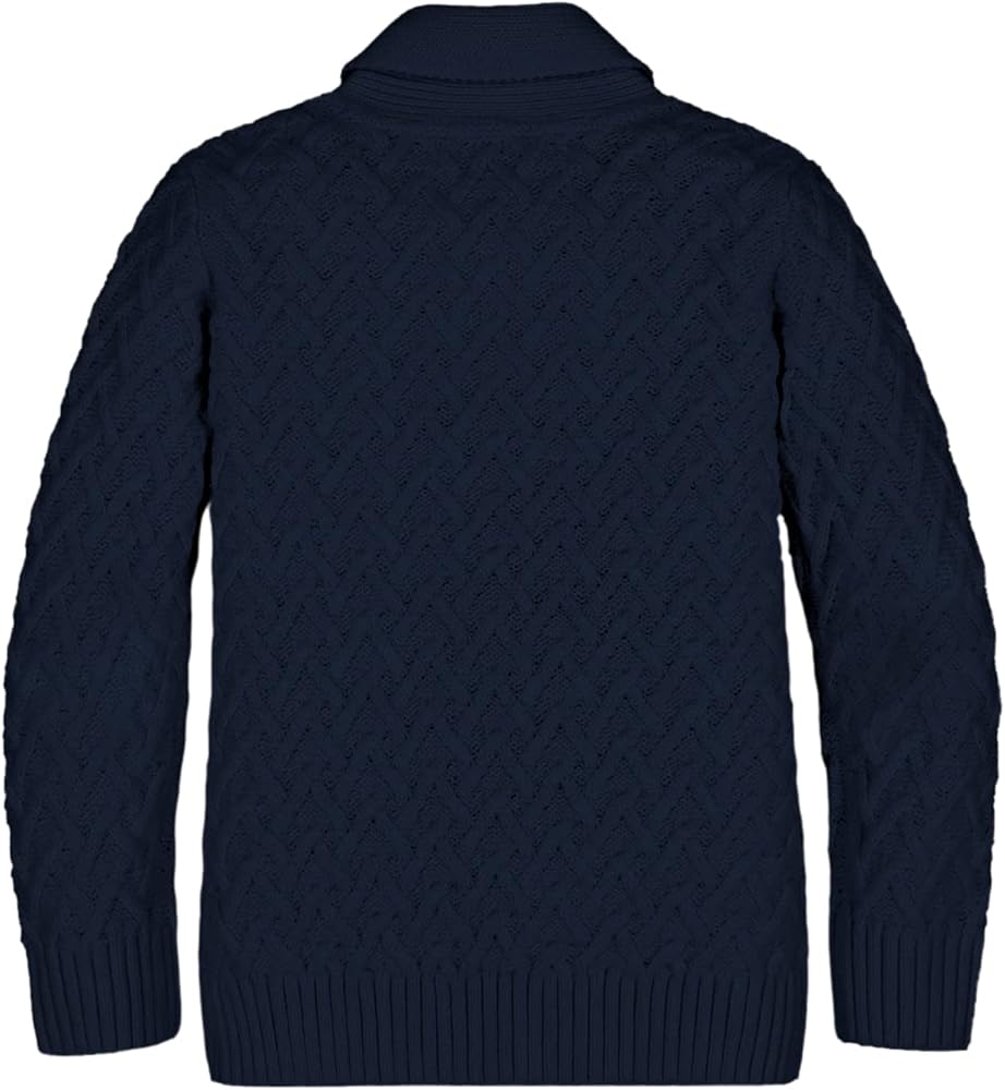 • الميزات: ياقة مدورة، ياقة شال، تصميم بزرين أماميين، نسيج كابل حصري، لون خالص، كم كامل، حاشية مضلعة. تريكو لطيف للأطفال