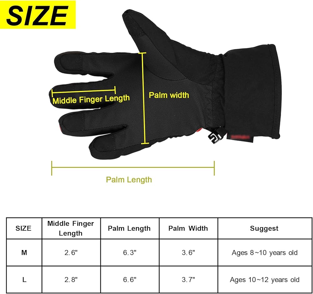Measure size of kids' hands before buying. Materials: Shell: 100% Polyester, Lining: 65% Polyester, 35% Rayon. Inserting: Polyfill interlining to keep warmer inside. Palm: Rhombic pattern PU with good grip and nice feeling. Buckle design for anti-lost. Much better quality to resist cold and wind. Elastic around wrists, It also has Hook & Loop fastener on the elastic, to make sure that there is not easy to fall off while you doing sports.Windproof. Soft and warm. A great gift for children and friends.
