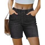 شورت Luvamia بمقاس كبير للسيدات يتميز بدرزة داخلية 17.78 سم، وحزام خصر مطاطي، و5 جيوب تقليدية. شورت الجينز النسائي المتعثر مصنوع من قماش مطاطي لتوفير أقصى قدر من الراحة.