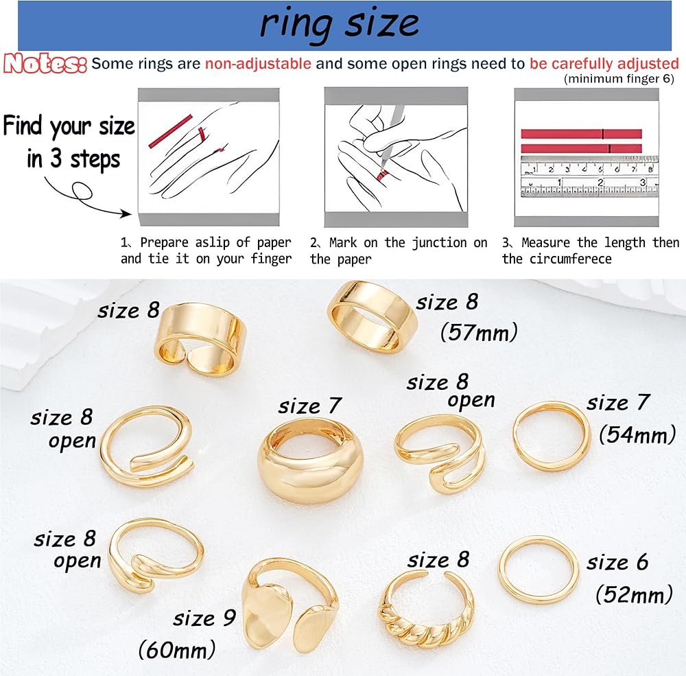 • حجم الخواتم القابلة للتكديس: نطاق حجم مجموعة الخواتم هذه هو من 6 بوصة إلى 9 بوصة، يمكنك اختيار أحجام مختلفة من الخواتم لارتدائها على أصابعك المختلفة. يرجى الرجوع إلى صورة المقاس لمعرفة المقاس التفصيلي قبل الطلب.