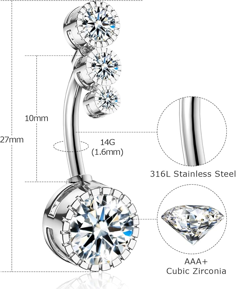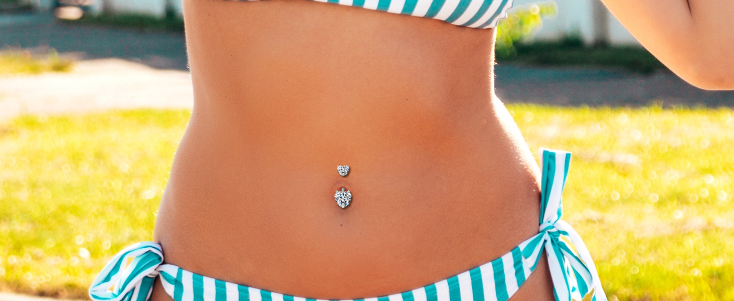 حلقة زر البطن مضادة للحساسية - مجموعة المجوهرات المثقوبة للبطن مصنوعة من الفولاذ الجراحي 316L عالي الجودة، ولا تسبب الحساسية، ومواد آمنة وخالية من النيكل والرصاص والكادميوم، ولا تؤذي بشرتك. سطح مصقول للغاية، لامع وأنيق. خفيفة الوزن ومريحة للمجوهرات اليومية.