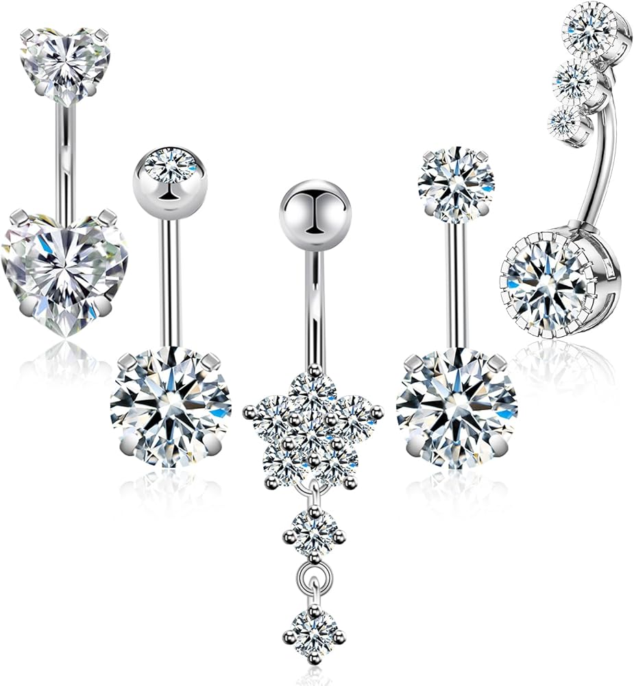 يشمل الطلب - سوف تحصل على 5 قطع من حلقات زر البطن بأنماط مختلفة، قطعة واحدة من حلقات زر البطن الكلاسيكية المزدوجة من الزركون + قطعة واحدة من حلقات البطن الكلاسيكية المتعددة CZ + قطعة واحدة من حلقات السرة الكلاسيكية الملونة متعددة مكعبات الزركونيا + قطعة واحدة من حلقات أزرار البطن الكلاسيكية المزدوجة الملونة CZ + قطعة واحدة من الفضة المتدلية حلقات زر البطن المكعبة من الزركونيا.