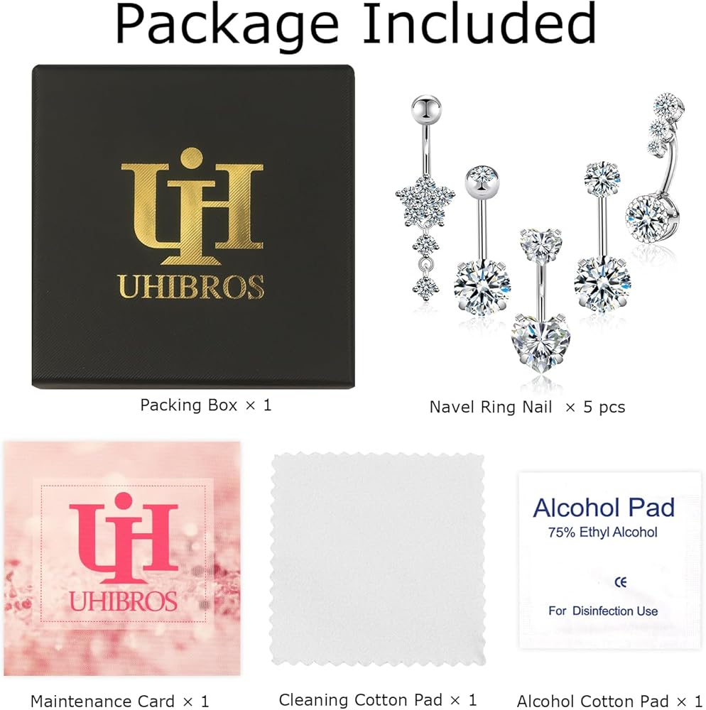 لامعة للغاية - حلقة زر البطن الجراحية المصنوعة من الفولاذ المقاوم للصدأ من UHIBROS مرصوفة بأعلى درجة لامعة من CZ (زركونيا مكعب)، لطيفة وأنيقة، على عكس أحجار الراين القاتمة، تتألق الزركونيا مثل الماس الحقيقي وتعكس لمعان قوس قزح في أشعة الشمس.