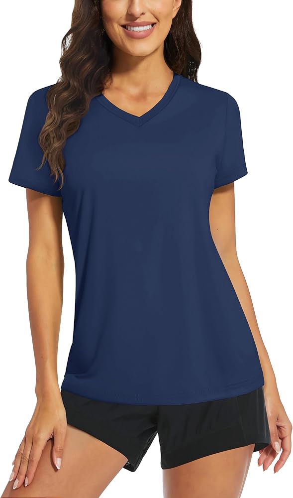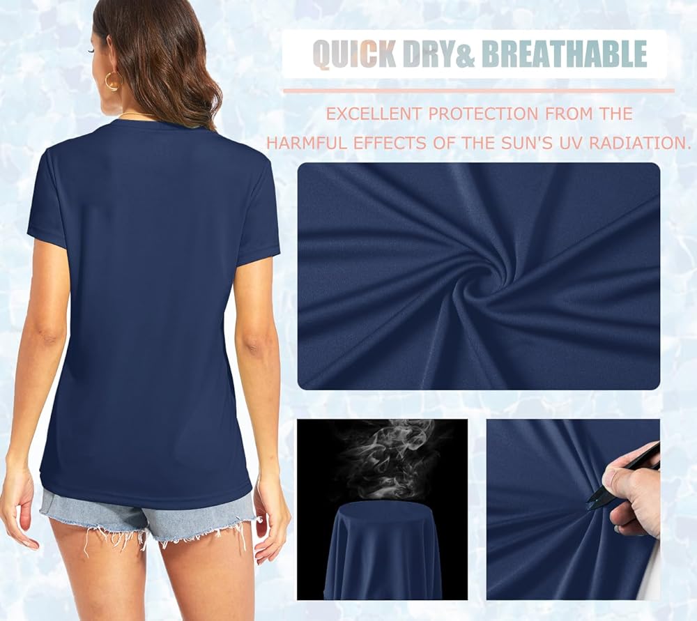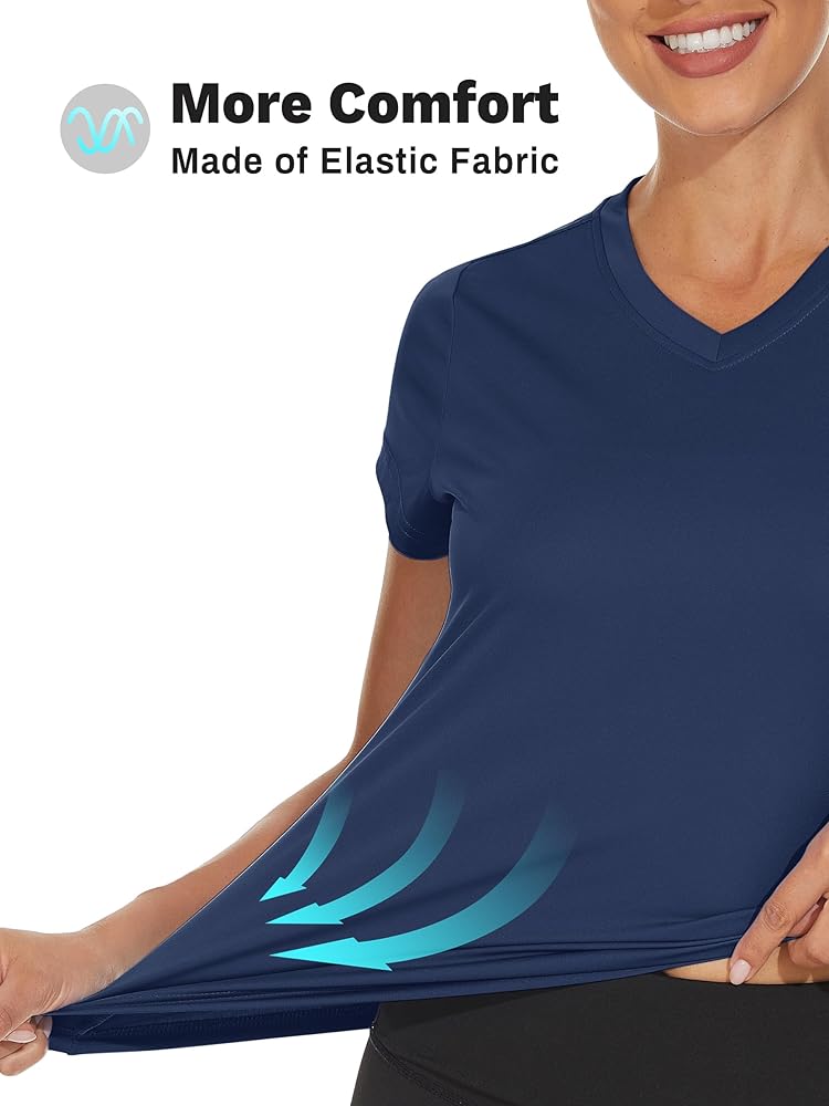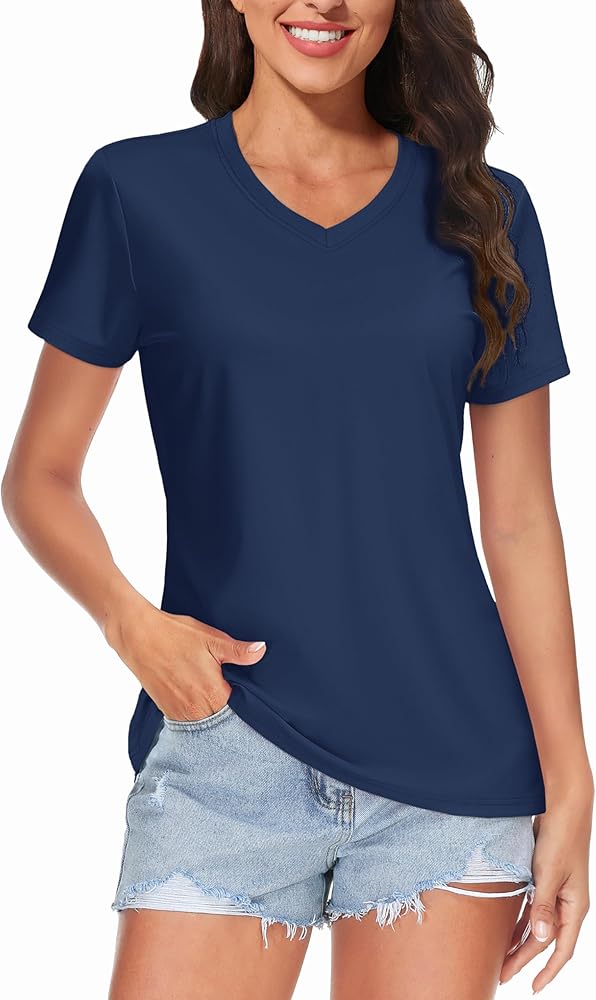 Women's Short Sleeve V-Neck Hiking Shirts Fabric: Polyester quick dry fabric. UV Protection Factor: 50+ Color: Light Blue, Gray Blue, Gray Purple, Tomato Red, Apricot, Azure, Dark Orange, Light Purple, Gray Pink, Light Green, E-Green, Ice Blue, Mint Green, Orange, Navy, Rose Red, Yellow, Waterfall Blue, Lake Blue, Light Pink, White, Light Gray, Dark Blue, Black Size: S M L XL 2XL Fit: Women Design for: Summer Wearing, Hiking, Fishing, Camping, Climbing, Running, Tennis, Golf, Traveling and any other outdoor or daily activities.