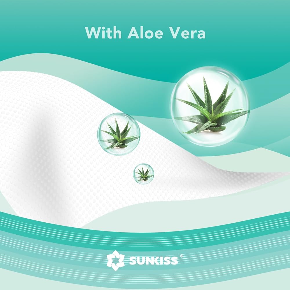 غير معطر بالصبار. مناديل مبللة من SUNKISS غنية بالصبار وفيتامين E، تنظف البشرة وترطبها بلطف. تتميز التركيبة بدرجة حموضة متوازنة، وخالية من العطور، وخالية من الكحول، وليست مصنوعة من المطاط الطبيعي.