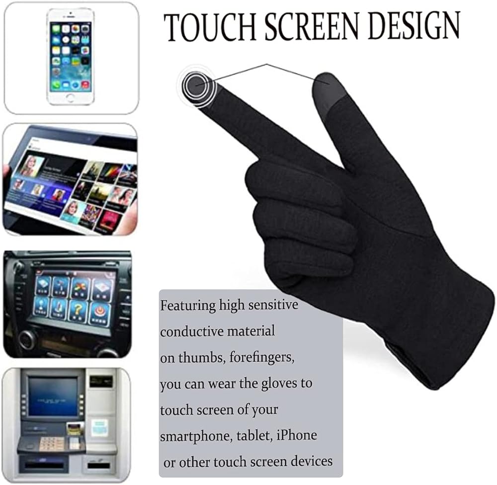 HIGH SENSITIVE TOUCHSCREEN: Featuring high sensitive conductive material on thumbs and forefingers, you can wear the gloves to touch screen of your smartphone, tablet or other touch screen devices.The gloves work just like using your fingers.