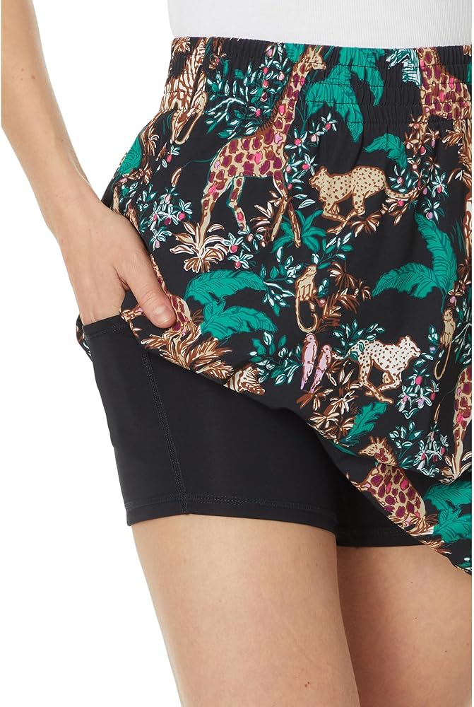 The Lilly Pulitzer Backcourt Skort Upf 50+ showcases a colorful print pattern with smocked waist for a flexible fit. This water-repellent skort has a back pocket and undershorts with pocket for added functionality. Provides UPF 50+ protection. Mid-rise silhouette. Pull-on style. Intended to hit above the knee. 86% polyester, 14% spandex. Machine washable.