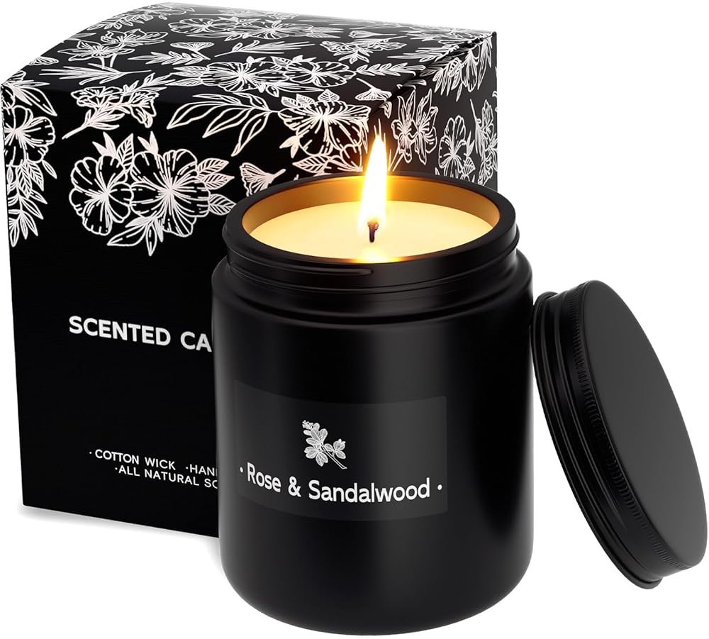 شمعة معطرة - شموع معطرة لعيد الميلاد للرجال - شمعة معطرة بشمع الصويا 7.6oz للمنزل - شموع طويلة الأمد مع احتراق أكثر من 40 ساعة - هدايا شموع للرجال، هدية عيد الميلاد (الورد وخشب الصندل)