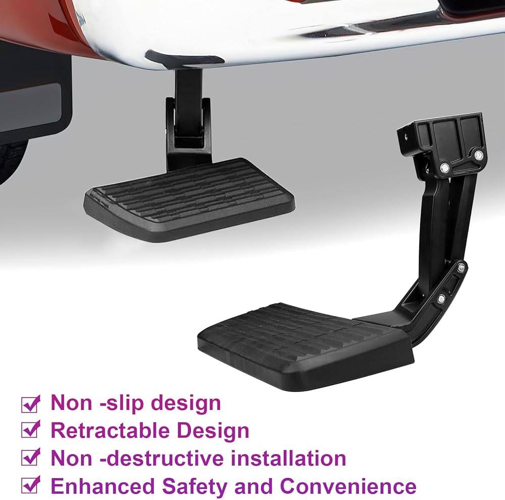 • التثبيت المباشر --- يتميز بتركيب بدون مثقاب، يمكن تركيب خطوة الشاحنة القابلة للسحب والمثبتة على الإطار على جانب شاحنتك مباشرة. يتم تثبيت هذا المنتج في الزاوية السفلية من الباب الخلفي الأيسر مما يجعله أكثر ملاءمة لاستخدام صندوق السيارة .