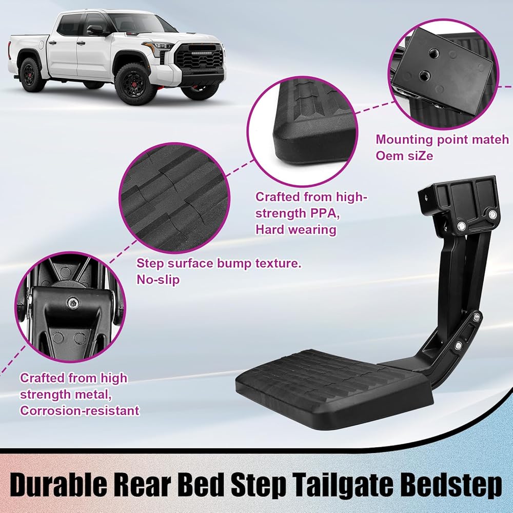 • الوظيفة --- توفر خطوة السرير هذه لأصحاب الشاحنات سهولة الوصول إلى سرير الالتقاط، ويمكن قلبها بسرعة أو سحبها بمجرد دفع قدمك.