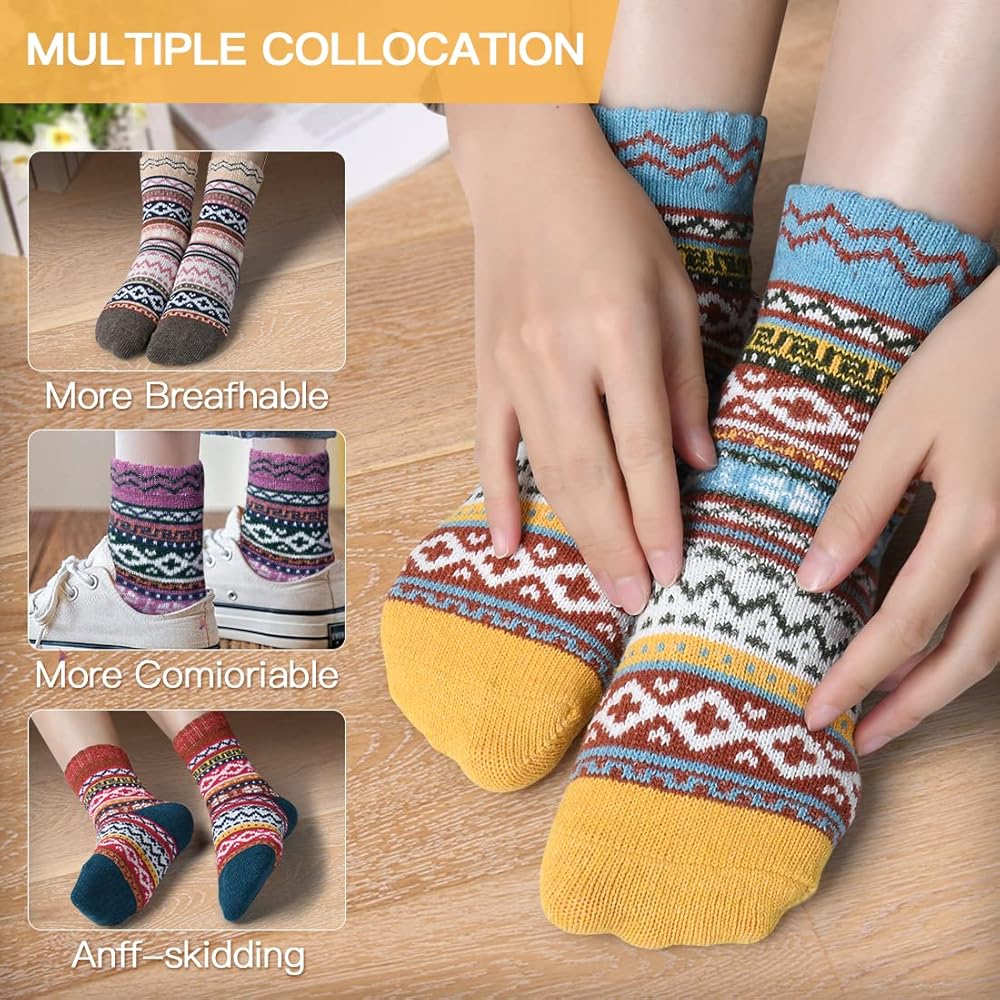 【المواد والعبوة】يتوافق الطراز والكمية مع صورة المنتج (5 أزواج في كل صندوق)، وتعكس عبوة الصندوق المزيد من الأناقة والملاءمة. الجوارب الحرارية للسيدات مصنوعة من مواد عالية الجودة، بما في ذلك الصوف والقطن والبوليستر والألياف اللدنة. هذه الجوارب الصوفية للسيدات ناعمة جدًا، ومسامية، ومقاومة للاهتراء، وتحافظ على راحة قدميك، حتى على أرضية المنزل. توفر لك الجوارب جودة أفضل، فأنت تستحق الحصول عليها في الشتاء، يرجى الاطمئنان عند استخدامها.