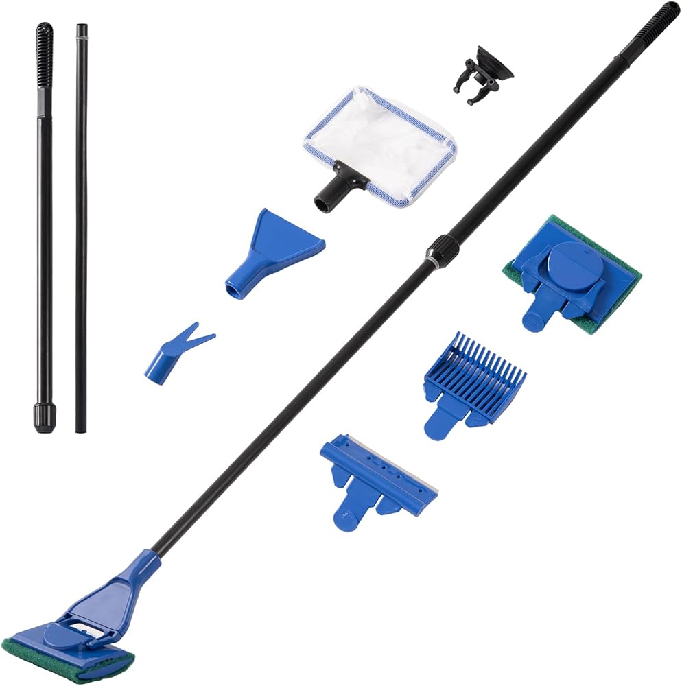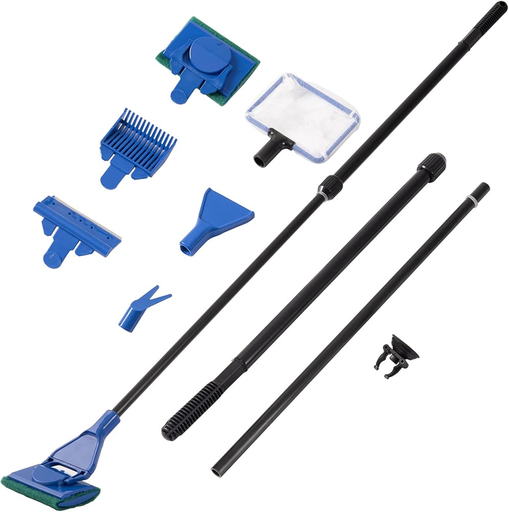 مجموعة أدوات تنظيف خزان الأسماك SOLEILLUNE، مجموعة تنظيف حوض السمك 5 في 1، بما في ذلك شبكة السمك، ومشط الحصى، ومكشطة الطحالب، وشوكة النبات، وفرشاة إسفنجة تنظيف زجاجية بمقبض طويل قابل للتعديل 21-31 بوصة