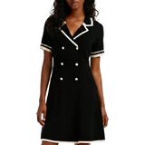 • المميزات - هذا فستان سترة أسود قصير الأكمام بأكمام طويلة، فستان عمل كاجوال منسوج بأزرار أمامية على شكل خط 3/4 كم بياقة ومزود بخطوط بيضاء.