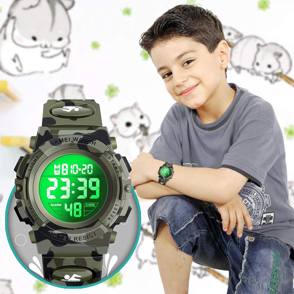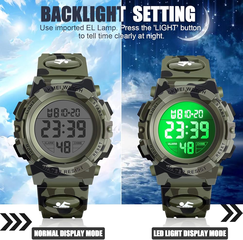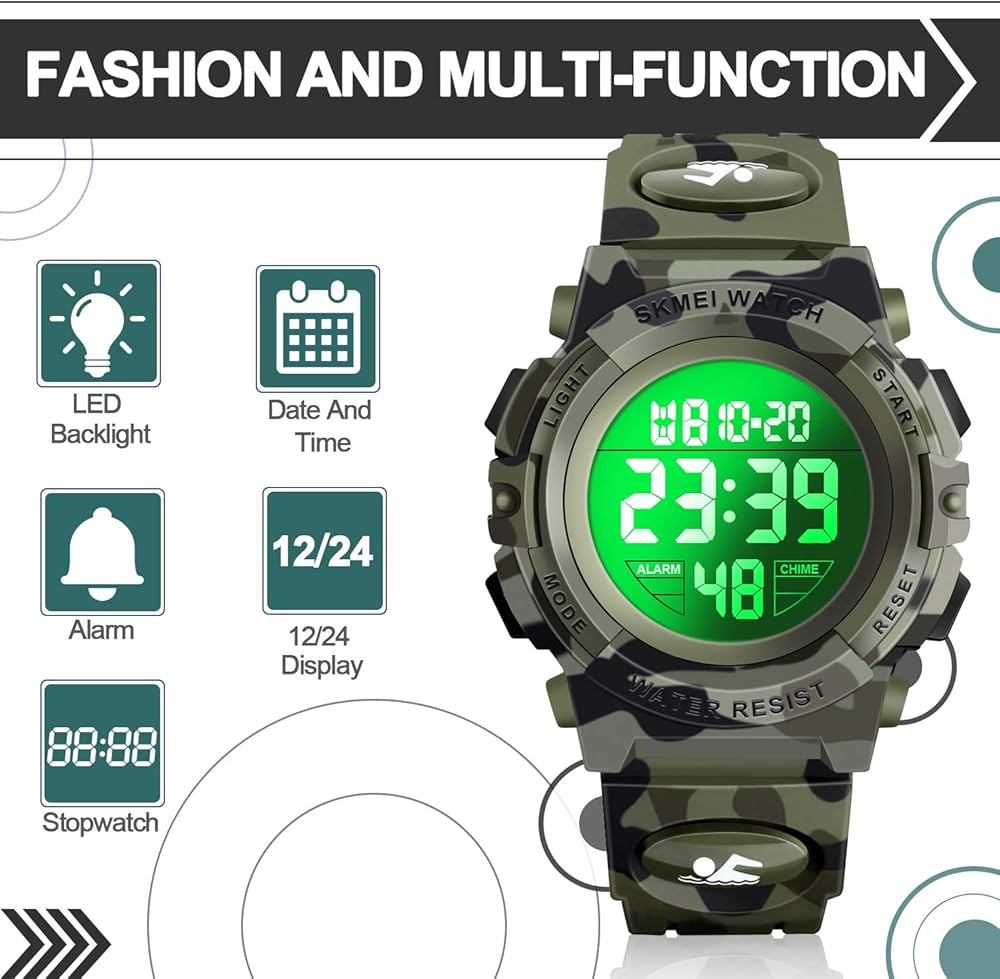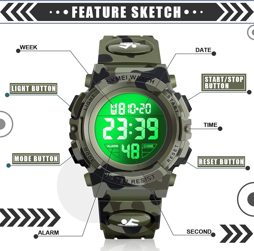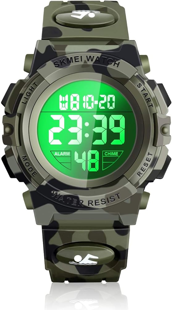 • ❤【ساعة رقمية للأطفال متعددة الوظائف】 مقاومة للصدمات، إضاءة خلفية LED، كرونوغراف، منبه، تقويم تلقائي، وقت 12/24 ساعة، هذه الوظائف تجعل هذه الساعة الرقمية للأولاد مناسبة لجميع أنواع الاستخدام الرياضي الداخلي والخارجي.