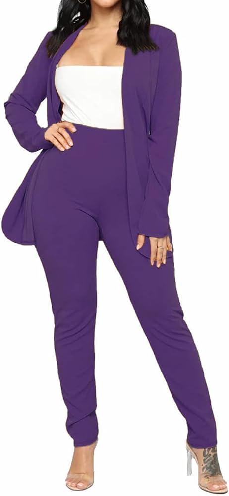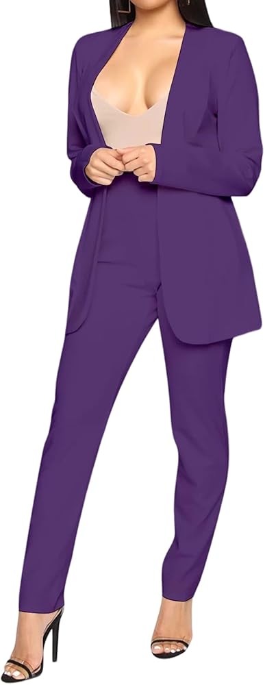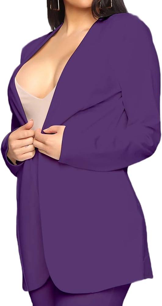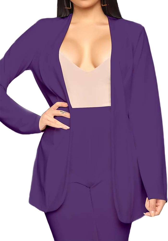 • ملابس عمل مكونة من قطعتين: طقم بليزر بأكمام طويلة، وسترة بليزر مفتوحة من الأمام، وألوان ثابتة، وسروال مرن عالي الخصر، طقم بدلة مكتب للنساء، طقم سراويل عمل للسيدات، سترة كاجوال مع طقم بنطلونات