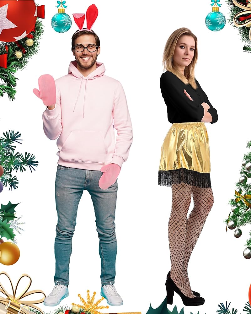 • Holiday Cosplay Theme: the Christmas costumes for women and men set is inspired by the Christmas movie; The bunny and lamp are the movie characters; You can dress up as the characters with your companion in the holiday party, eye catching and unique