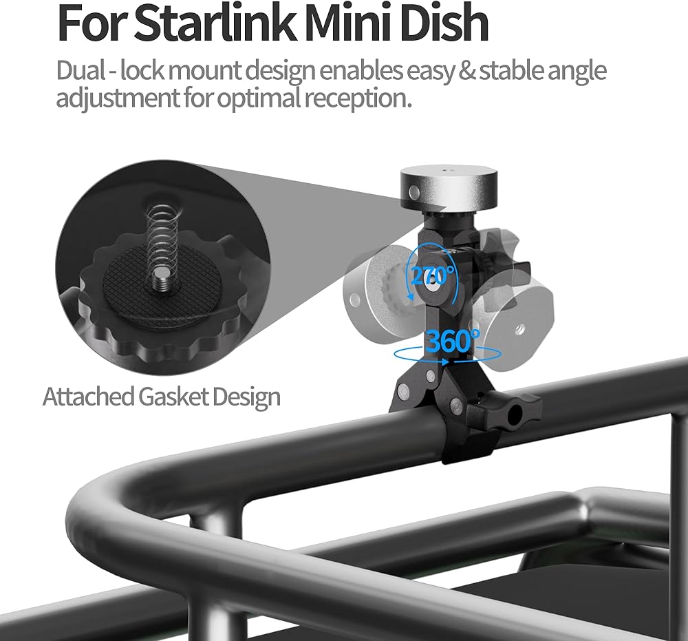 متعدد الاستخدامات لمختلف التطبيقات: سواء كنت تقوم بتركيبه على رف سقف RV، أو عارضة اليخت، أو عمود على سيارتك، فإن هذا التركيب المرن والمتين يتكيف مع مجموعة متنوعة من الإعدادات. إنه مثالي لتحسين أداء طبق ستارلينك الصغير الخاص بك، أينما كنت