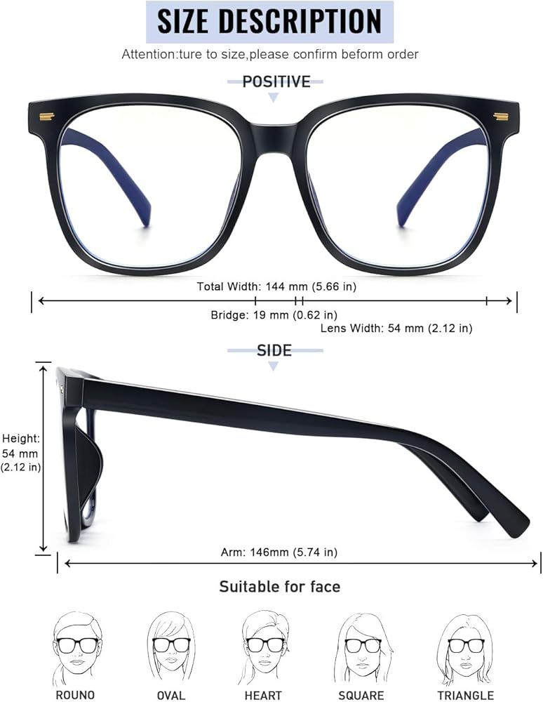 • ✔️ 【تصميم مربع كبير الحجم】: تصميم إطار أنيق كبير الحجم، مثالي لكل أنواع الوجه تقريبًا، مريح للارتداء اليومي ومشهور بين الرجال والنساء. الإطارات تناسب أي مظهر سواء كان كاجوال أو عصري أو كلاسيكي أنيق.
