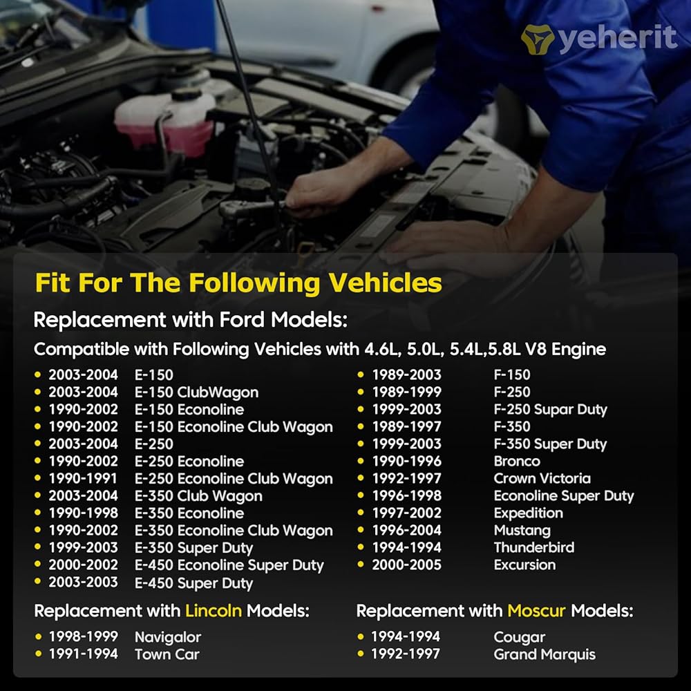 [الإعداد]: متوافق مع مجموعة من سيارات Ford وLincoln وMercury، بما في ذلك 1990-1996 Ford Bronco (V8 5.0L/5.8L)، 1992-1997 Crown Victoria (V8 4.6L)، 1990-2004 E-150 /E-250/E-350 (V8 4.6L/5.0L/5.4L/5.8L)، 1989-2003 F-150/F-250/F-350 (V8 4.6L/5.0L/5.4L/5.8L)، 1997-2002 إكسبيديشن (V8 4.6L) /5.4 لتر)، 1998-1999 لينكولن نافيجيتور (V8 5.4 لتر)، وموستانج 1996-2004 (V8 4.6 لتر). يضمن هذا التوافق الواسع إمكانية العثور على قطعة الغيار المناسبة عالية الأداء لسيارتك