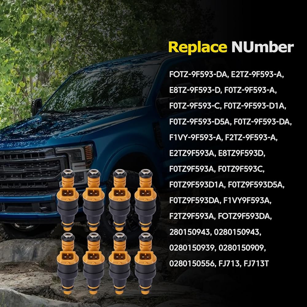 مجموعة من 8 حاقن وقود متوافق مع Ford Lincoln Mercury F150 F250 E150 E250 E350 Mustang Expedition Lincoln Mercury 4.6L 5.0L 5.4L 5.8L استبدال الجزء 0280150943، 0280150939، 0280150909