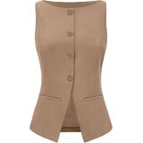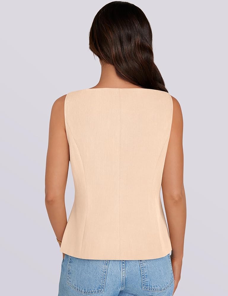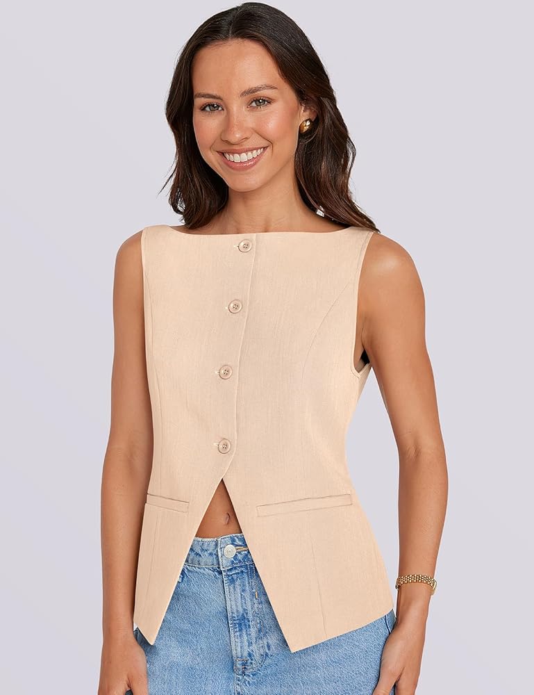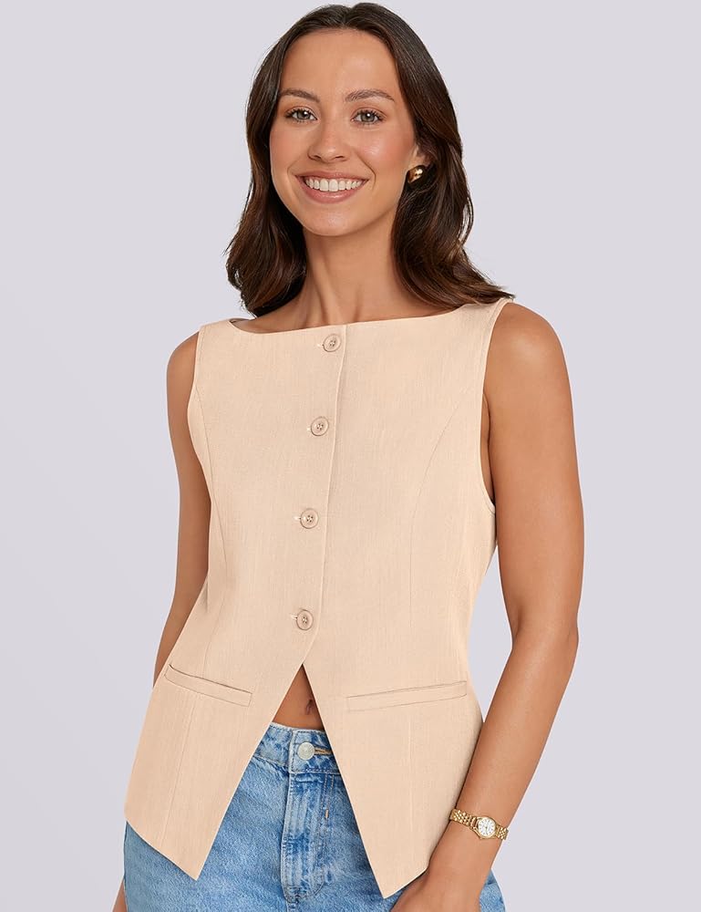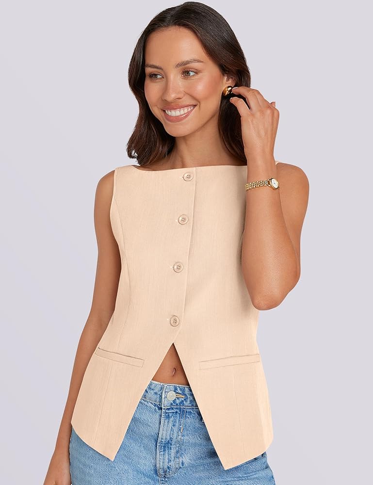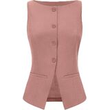 المزايا: سترة أنيقة وأنيقة، بدون أكمام، جذابة على شكل قارب، مبطنة بالكامل، لون ثابت، أربعة أزرار في الأمام، جيبان عمليان. مثالي للارتداء طوال اليوم.