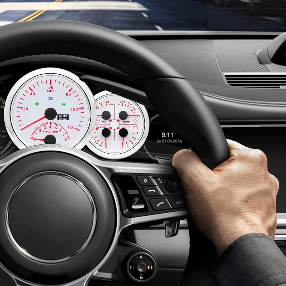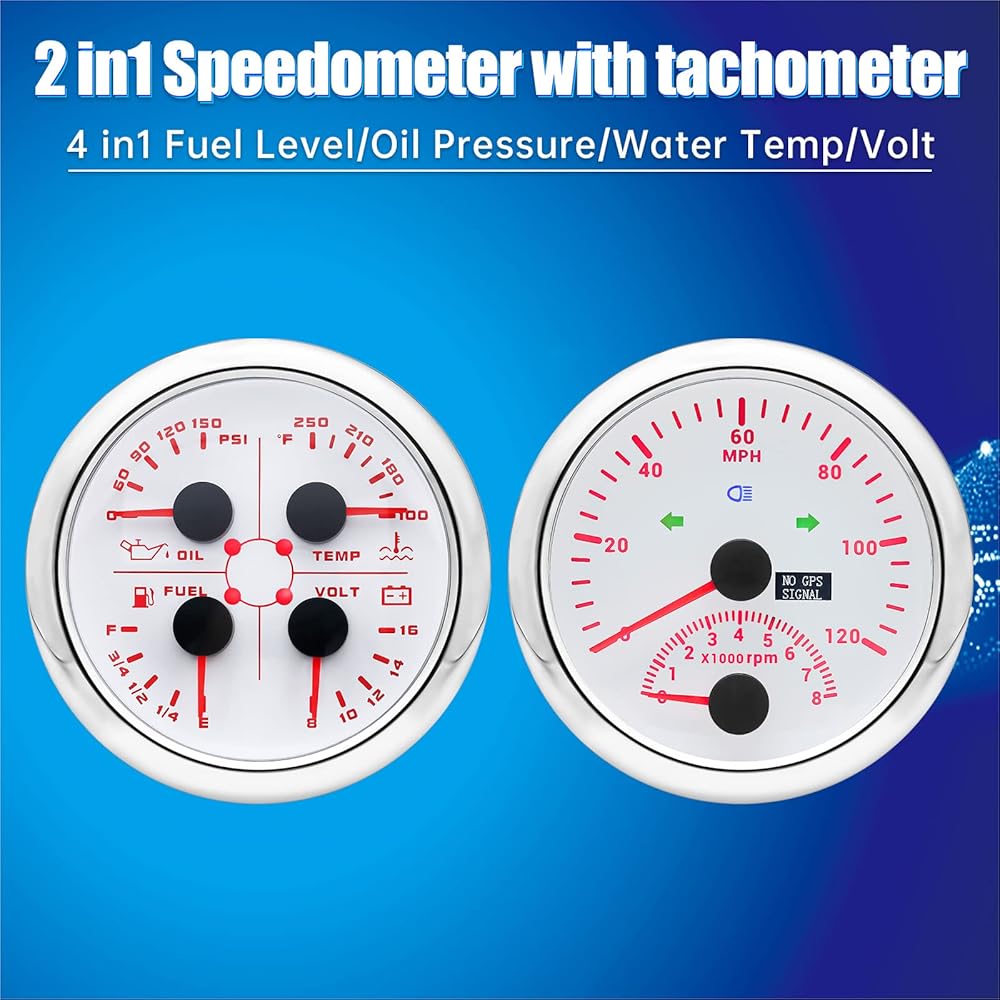 مجموعة المقاييس - عداد السرعة بنظام تحديد المواقع العالمي (GPS) مع مقياس سرعة الدوران، مقياس مستوى الوقود 4 في 1 / مقياس درجة حرارة الماء / مقياس ضغط الزيت / الجهد الكهربي