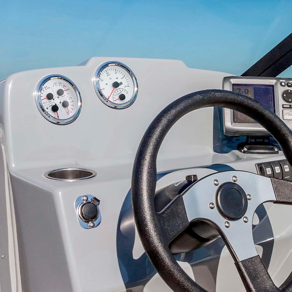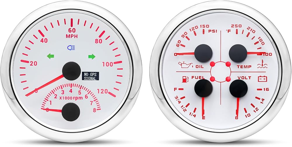 مجموعة قياس السرعة ARTILAURA GPS - عداد السرعة GPS مع مقياس سرعة الدوران، مقياس مستوى الوقود، درجة حرارة الماء، مقياس ضغط الزيت، الجهد الكهربي 4 في 1، مقياس القارب للسيارة البحرية للسيارة (أبيض)