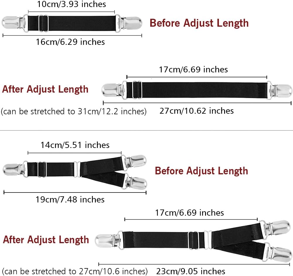The clips and adjustment buckles of the garter belt are made of anti-allergic metal material, skin-friendly to wear. All suspender straps are movable and removable. It can be freely combined 4, and 2 straps for more variety, suitable for any occasion.